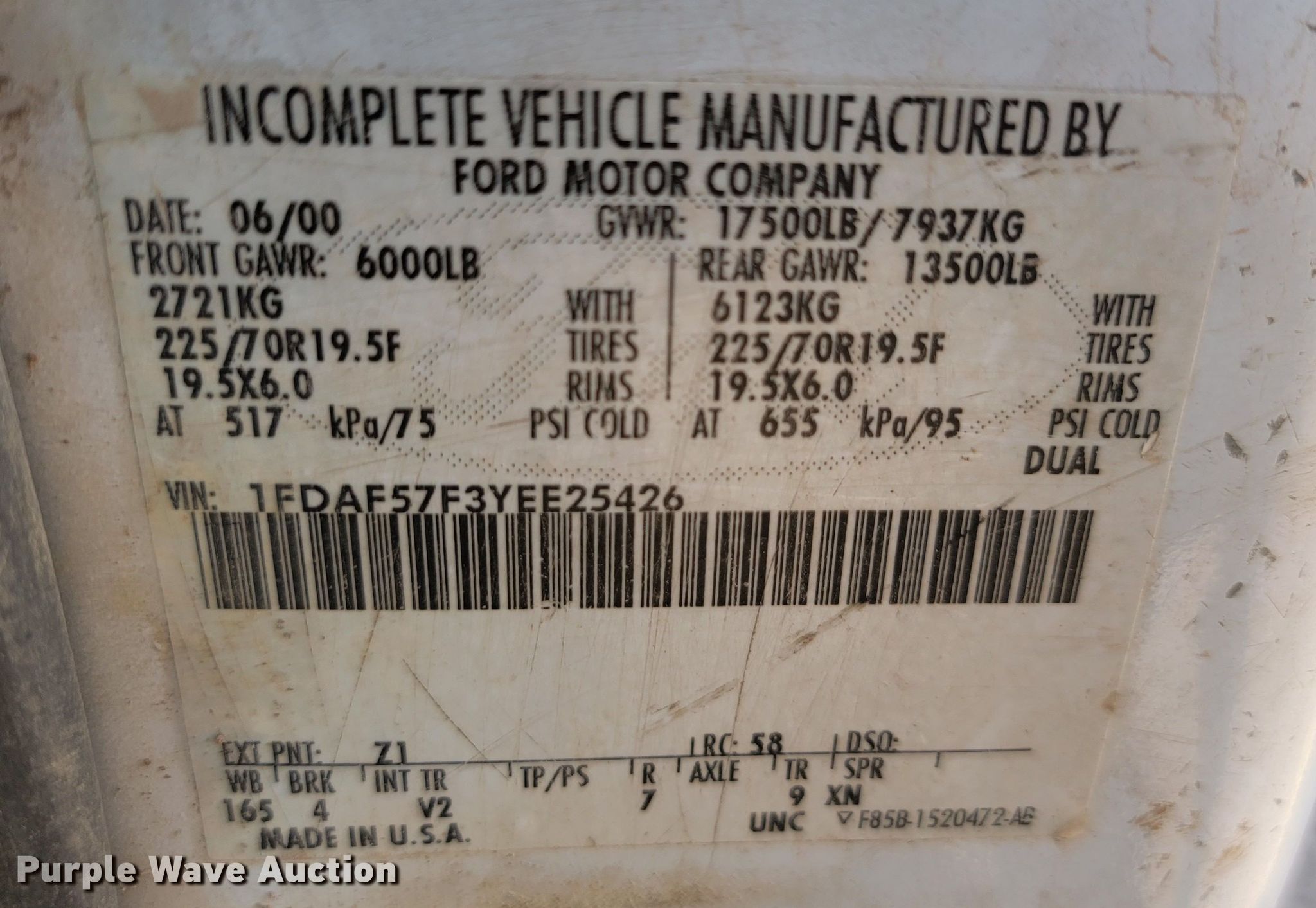 - VIN: 1FDAF57F3YEE25426
