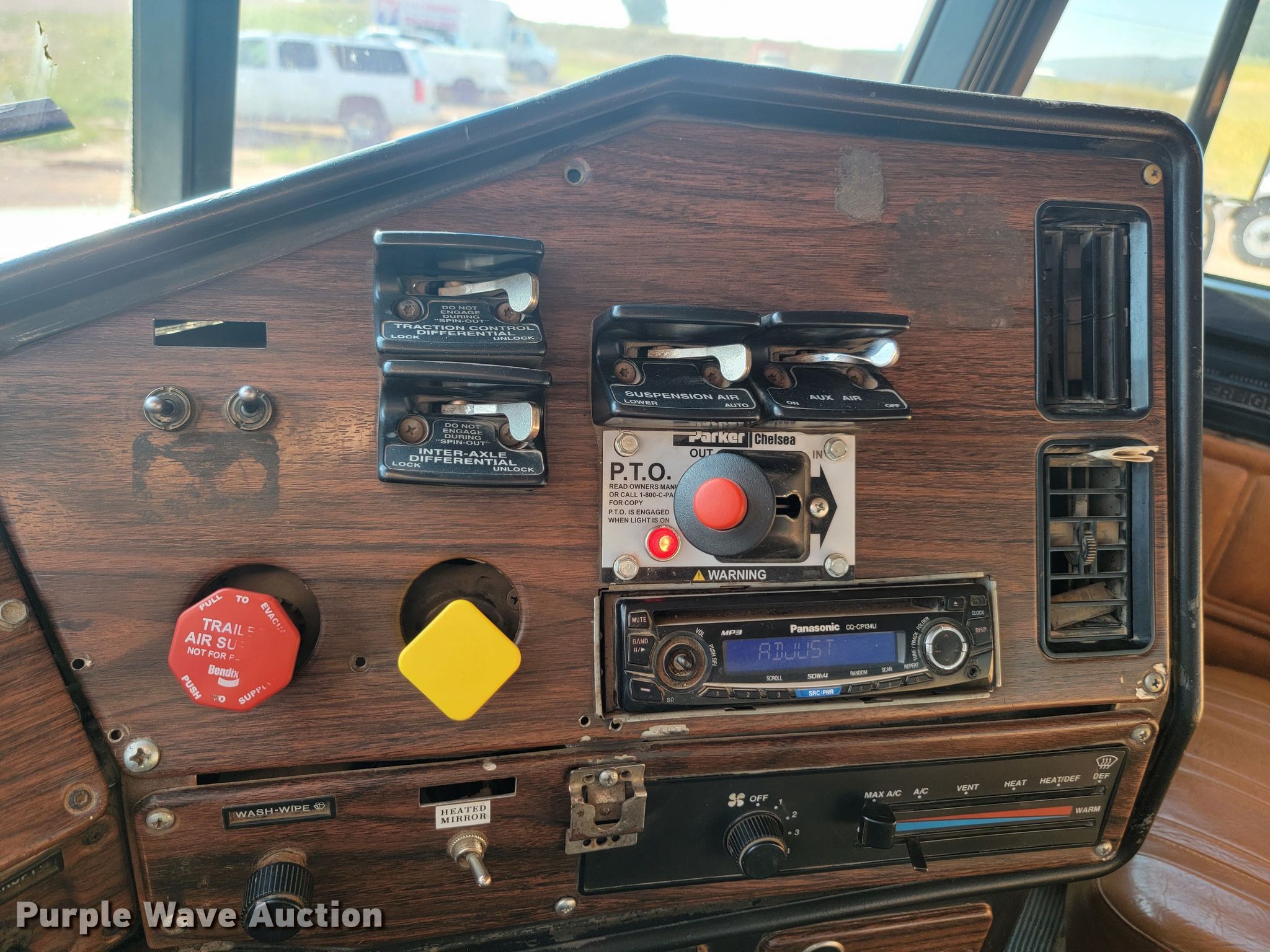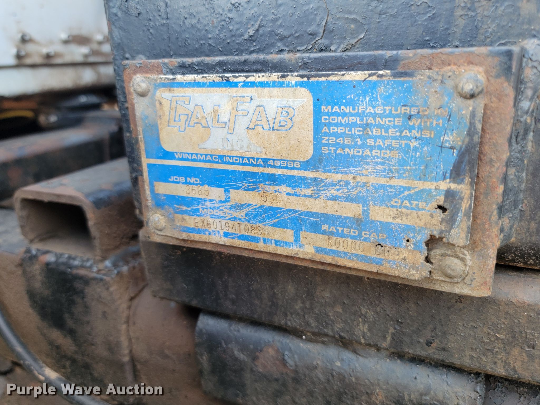 1999 Freighliner roll-off container truck. Miles: 838,776 on odometer, Hours: 1,669 on meter, VIN: 1FVX6MDB7XPA12963. Engine Cummins ISM, Displacement: 10.8L, Cylinders: 6, Fuel type: Diesel. Transmission Eaton Fuller, Manual, Speed: 10. Chassis Axles: Tandem, Pusher axle, Suspension: Air, Brakes: Air, PTO, GVWR: 80,000 lbs. Interior AC, Heat. Features Roll-off bed GalFab EX60194T083, Serial: 596, 22', Ram: Double. Tires Size: 315/80R22.5, Lift axle: 255/70R22.5. South Dakota title. Title distribution may be delayed up to 14 days from verification of funds. 7481 Stagestop Road. Black Hawk, SD 57718