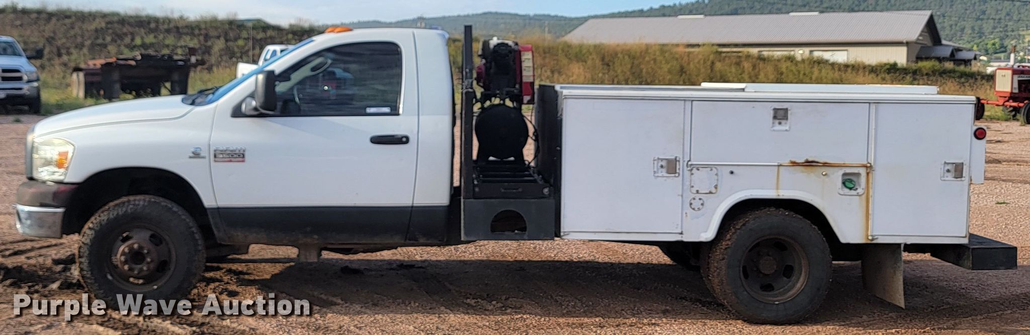 This 2008 Dodge Ram 3500 utility bed pickup truck will sell to the highest bidder regardless of price.