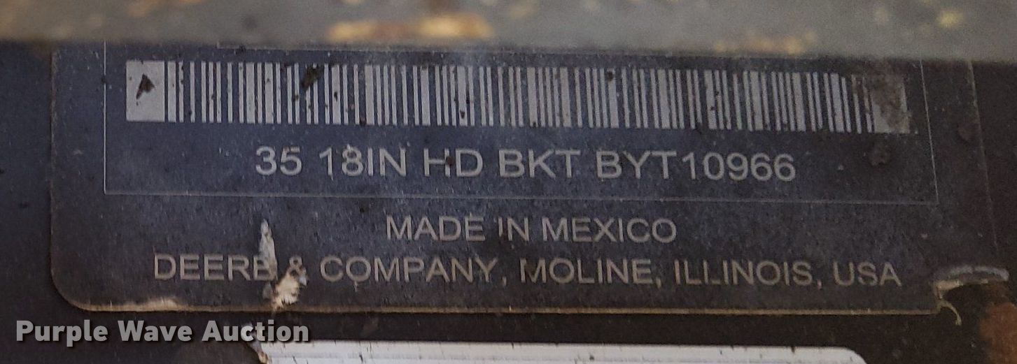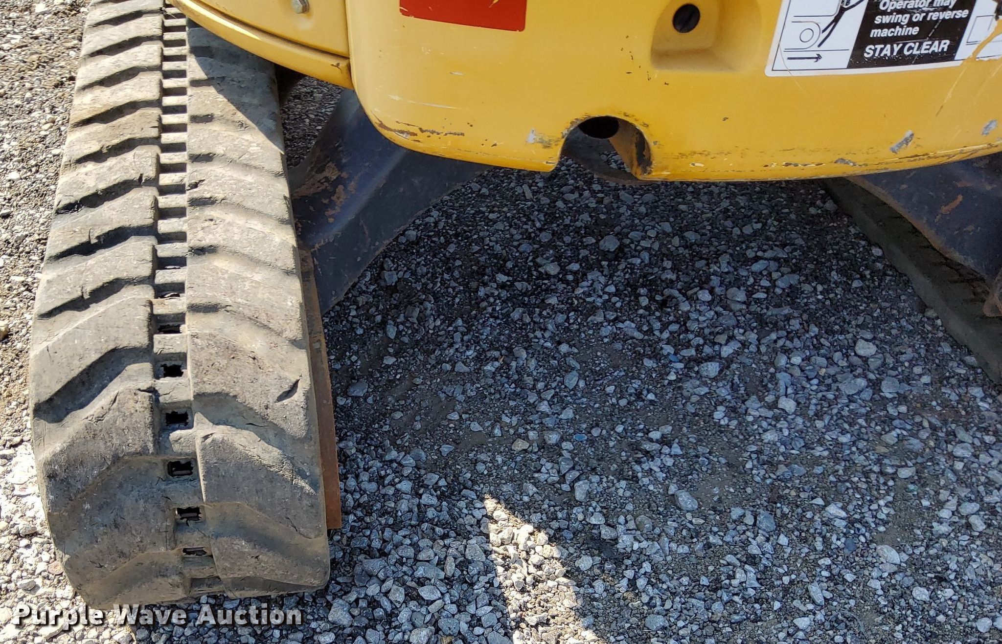 2013 John Deere 35D mini excavator. Hours: 4,165 on meter, Serial: 1FF035DXVCG270449. Engine Yanmar 3KNPA, Displacement: 1.642L, Cylinders: 3, Fuel type: Diesel. Transmission Hydrostatic, Two speed travel. Operators station Enclosed cab, AC, Heat. Features Auxiliary hydraulics, Backfill blade Width: 68", Boom Swing, Stick Stick length: 47", Quick coupler: Mechanical, Bucket Width: 17", Teeth: 4. Tracks Width: 12", Rubber. 15107 North 137th East Avenue. Collinsville, OK 74021