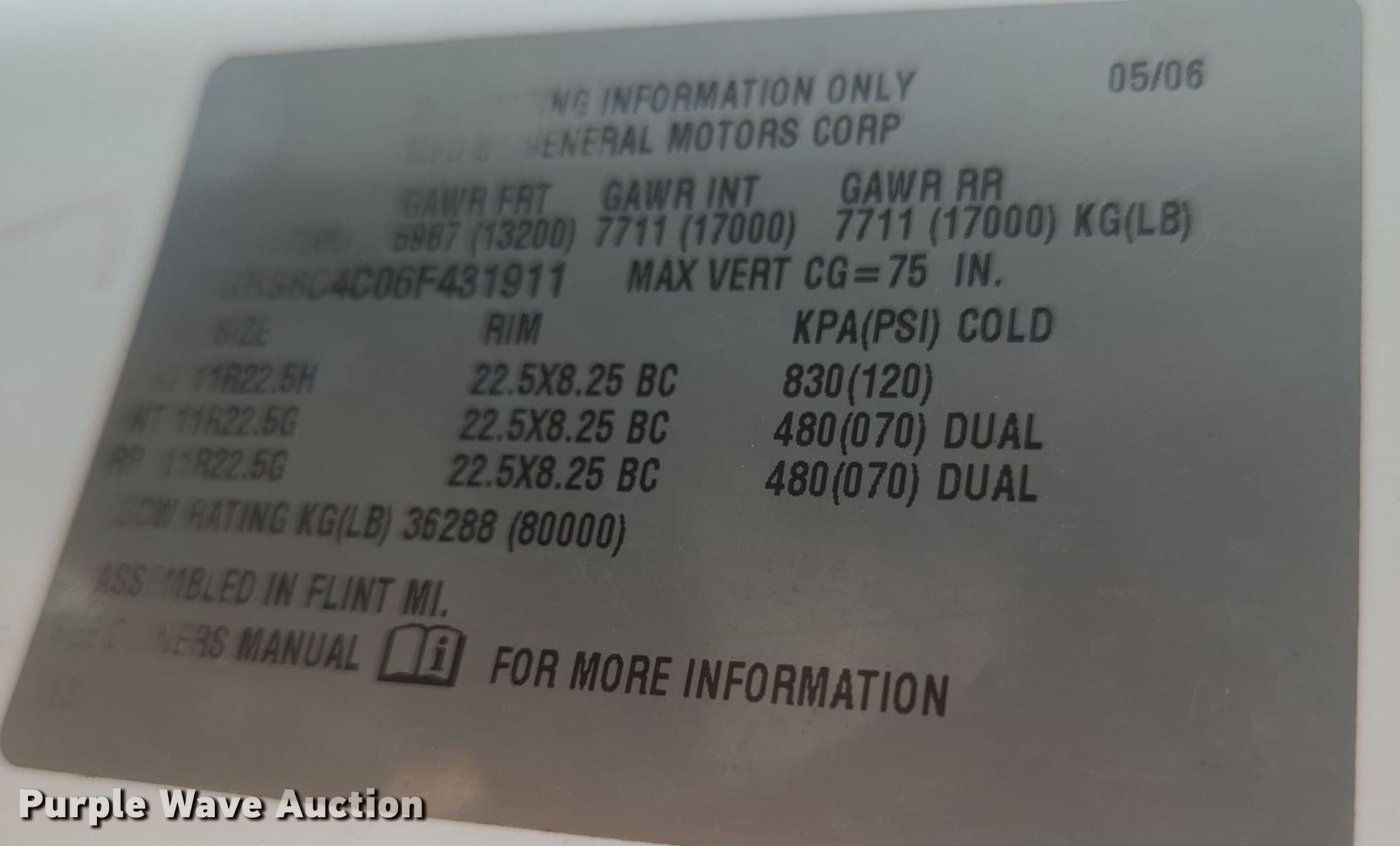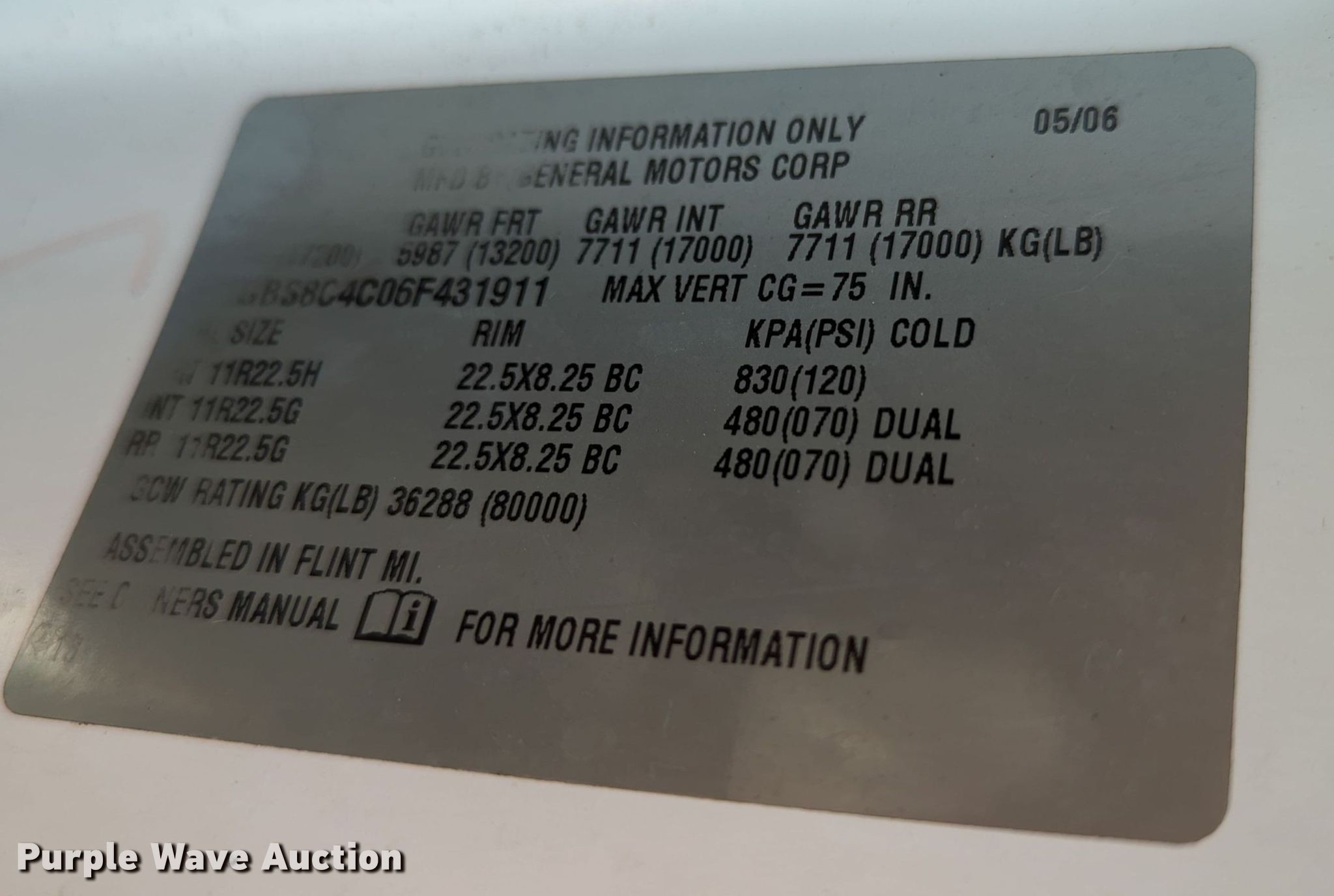 - VIN: 1GBS8C4C06F431911