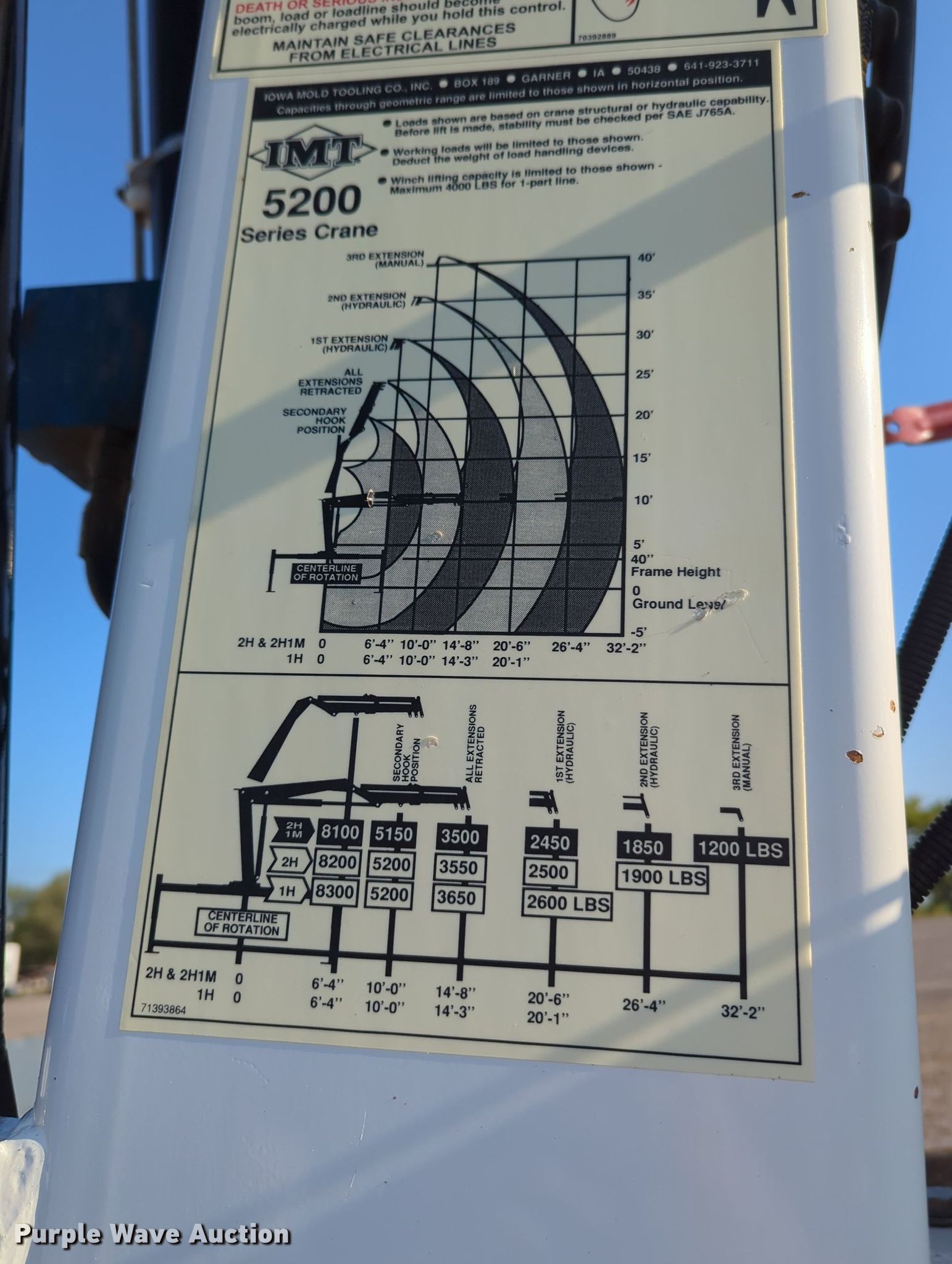 2010 International 7000 crane truck. Miles: 170,628 on odometer, VIN: 1HTWGAAR8AJ236838. Engine Displacement: 7.6L, Cylinders: 6, Fuel type: Diesel, Engine brake. Transmission Eaton Fuller, Manual, Speed: 8. Chassis Axles: Tandem, Differential lock: Inter-axle, Suspension: Spring over walking beam, Brakes: Air, PTO, GVWR: 54,000 lbs. Interior AC, Heat, Cruise control, Auxiliary controls. Features Utility bed 18' L x 96" W, Crane IMT 5200, Maximum boom length: 32' 2" Maximum lift capacity: 8,300 lbs, Hi-Rail system Boom controls, Lift chart. Tires Front: 315/80R22.5, Rear: 11R22.5. Oklahoma title. Title distribution may be delayed up to 14 days from verification of funds. 15107 North 137th East Avenue. Collinsville, OK 74021