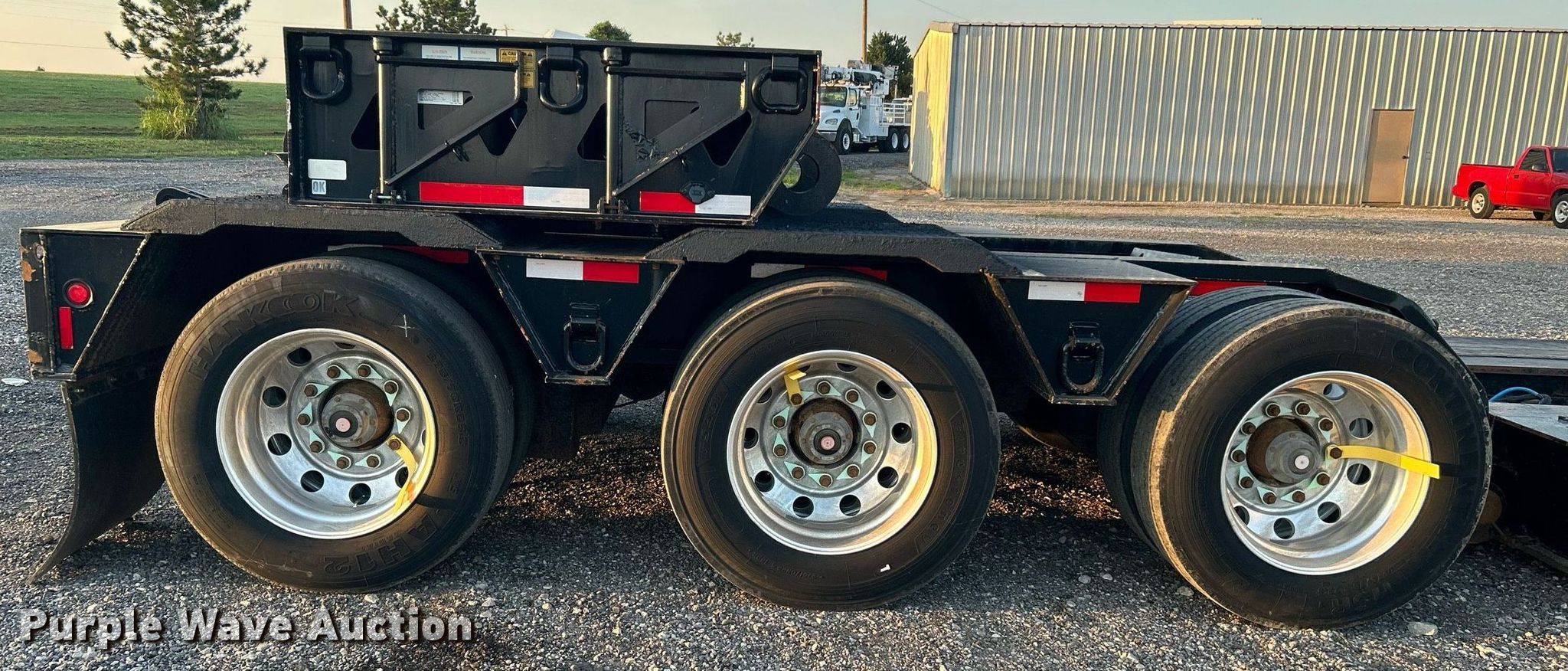 2007 Trail King TK13OHDG-533 lowboy equipment trailer. VIN: 1TKJ053397M128885. Dimensions Overall: 53' L x 108" W, Deck: 24' 6" L x 96" W, Pin-on deck extension: 55"L. Features Deck type: Steel, Wood, Self-contained hydraulics. Chassis Suspension: Air, Brakes: Air, Axles: Triple, GVWR: 164,720 lbs, GAWR: 22,700 lbs. Tires Size: 275/70R22.5. Oklahoma title. Title distribution may be delayed up to 14 days from verification of funds. 15107 North 137th East Avenue. Collinsville, OK 74021