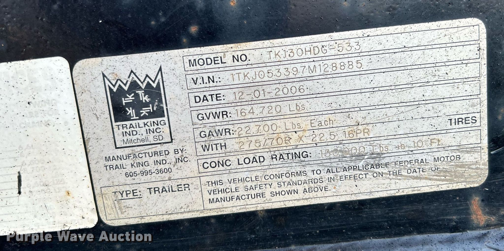 Purple Wave is selling a used Equip. Trailer in Oklahoma. This item is a 2007 Trail King TK13OHDG-533 lowboy equipment trailer with the following: VIN: 1TKJ053397M128885
