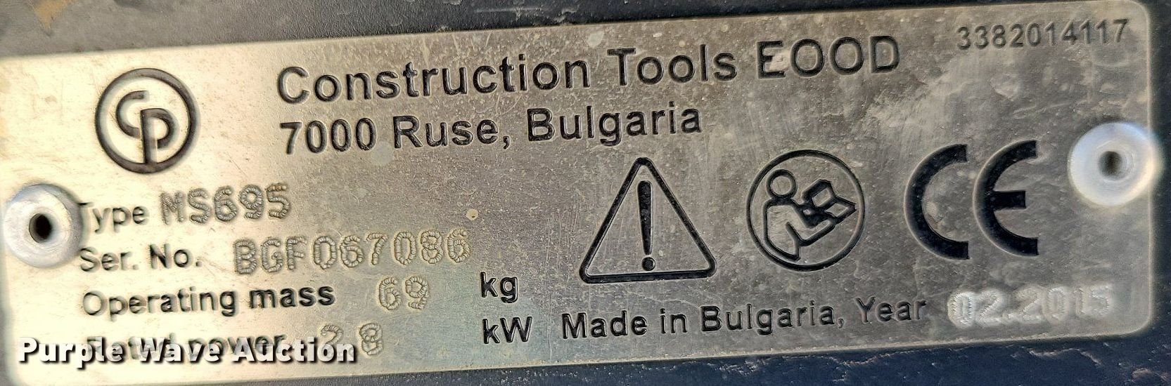 Purple Wave is selling a used Walk Behind Compactor in Missouri. This item is a 2015 Chicago Pneumatic MS695 plate compactor with the following: Serial: BGF067086