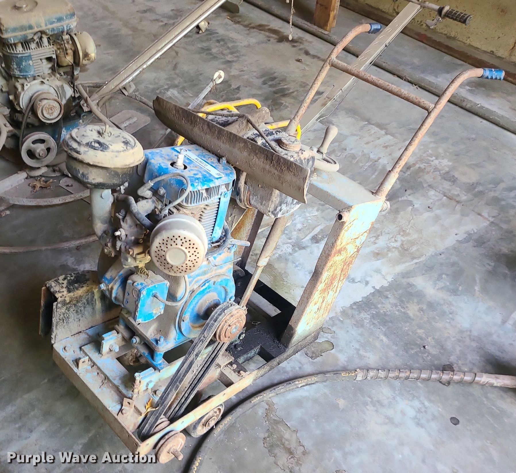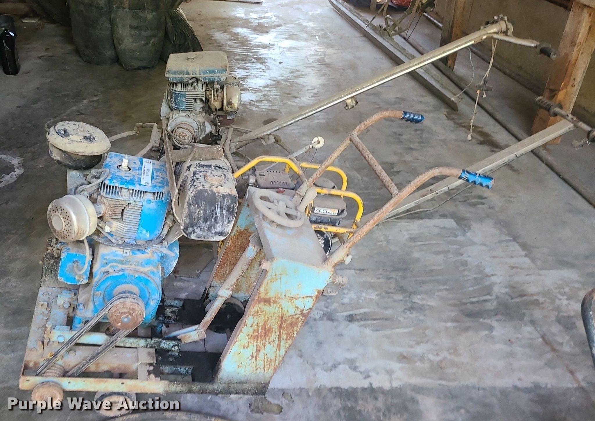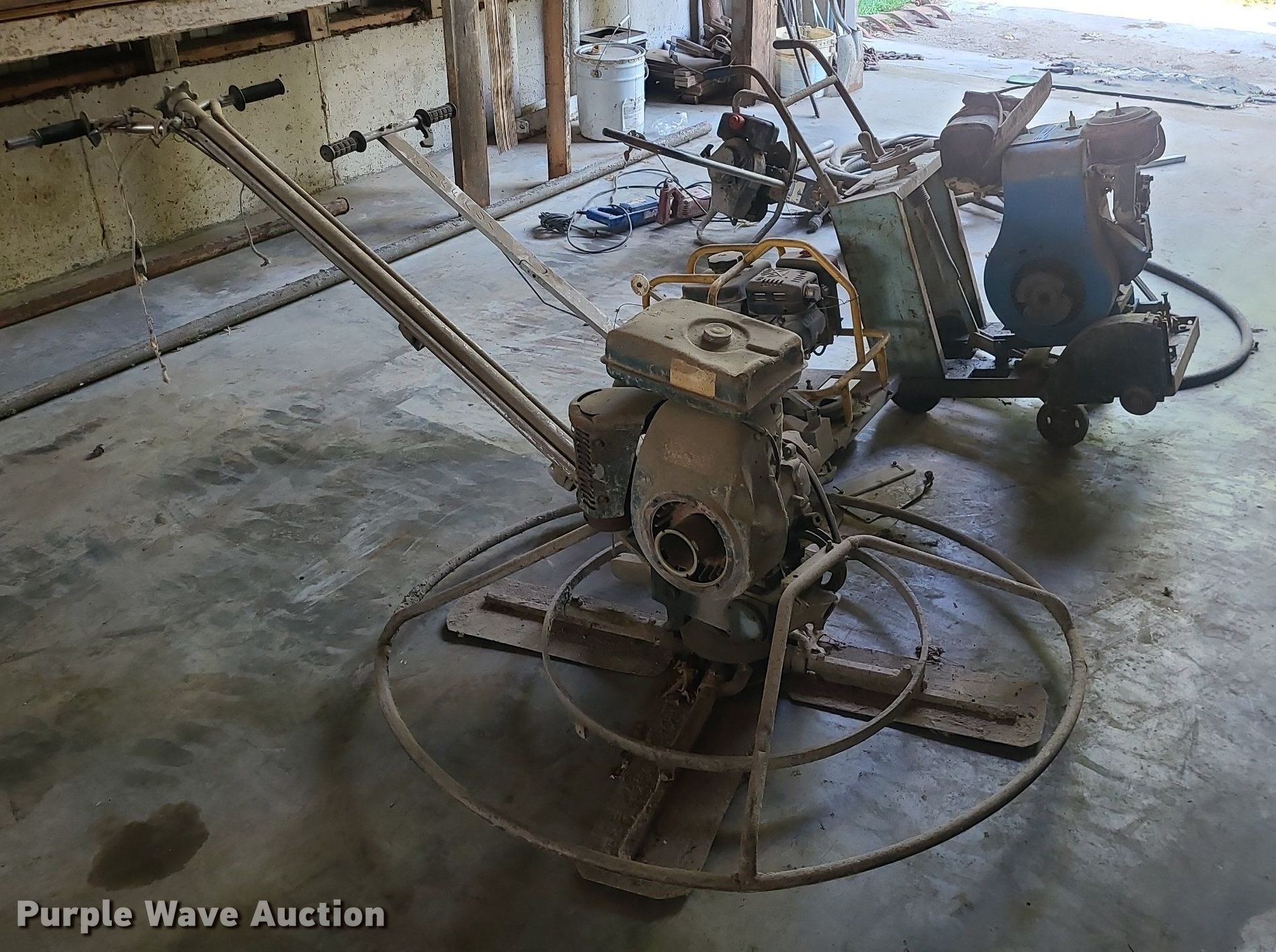 Concrete tools. Vibrators, (2) concrete saws, 36" W power trowel, Unknown operating condition. Charlie's Concrete. 9323 Lancaster Road. Liberty, MO 64068