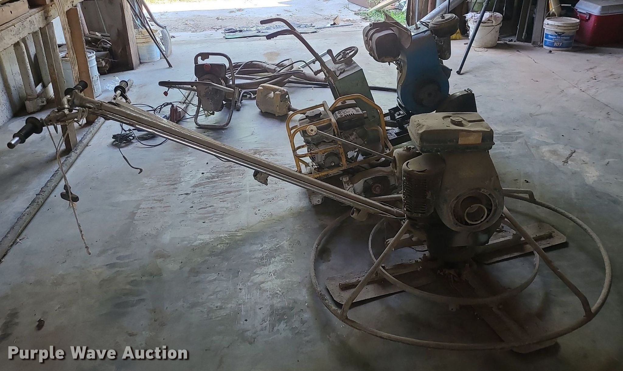 Purple Wave is selling a used Concrete Equip. or Acces. in Missouri. This item is a Concrete tools with the following: Vibrators, (2) concrete saws, 36" W power trowel, Unknown operating condition