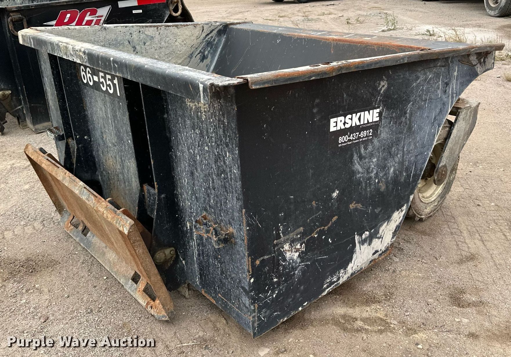 Purple Wave is selling a used Skid Steer Attach. in Minnesota. This item is a Erskine concrete buggy with the following: Unit #: 66-551, 62" L x 76" W x 36" height, Tires: 23x8.50-12