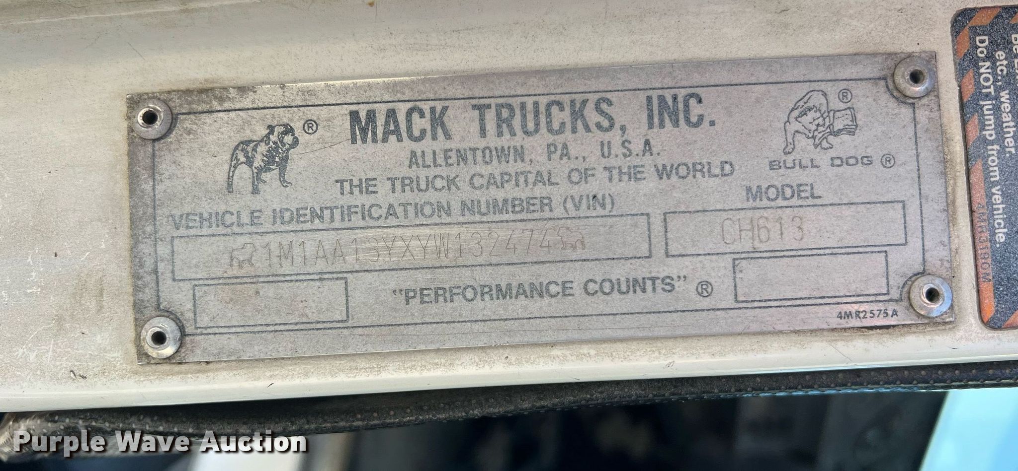 Take a look at this used 2000 Mack CH613 dump truck being sold on October 12th, 2023 in the SOLD! October 12 Construction Equipment Auction made by Mack. Take a look at all of the item information below or take a look at similar auctions for Construction Trucks.