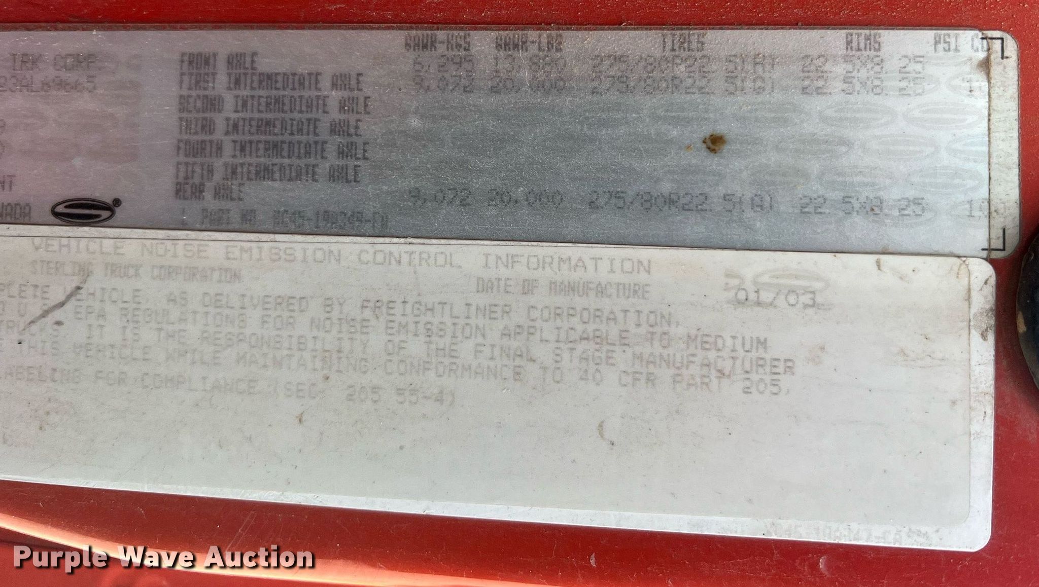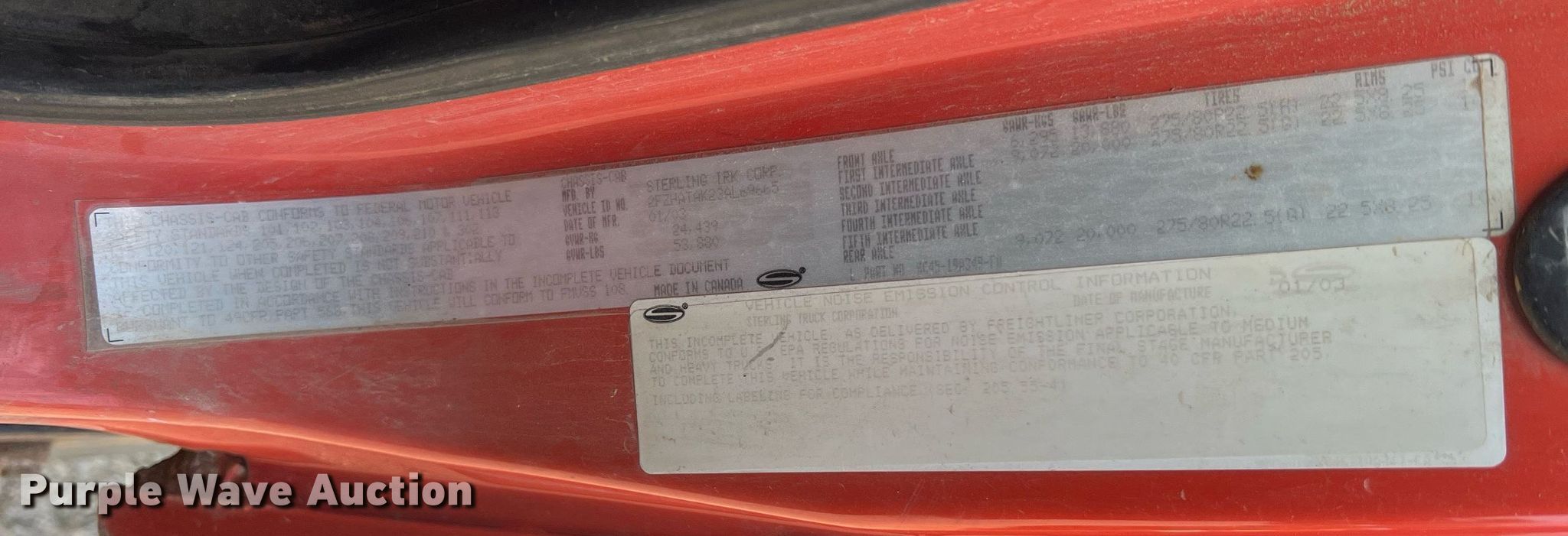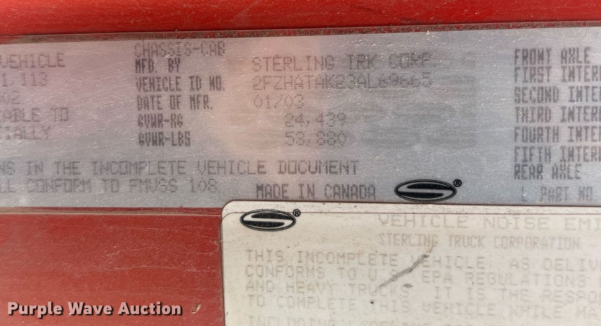 Purple Wave is selling a used Construction Dump Truck in Missouri. This item is a 2003 Sterling L-Line dump truck with the following: Miles: 204,635 on odometer, Hours: 12,163 on meter, Miles or hours may vary, unit still in use, VIN: 2FZHATAK23AL69665