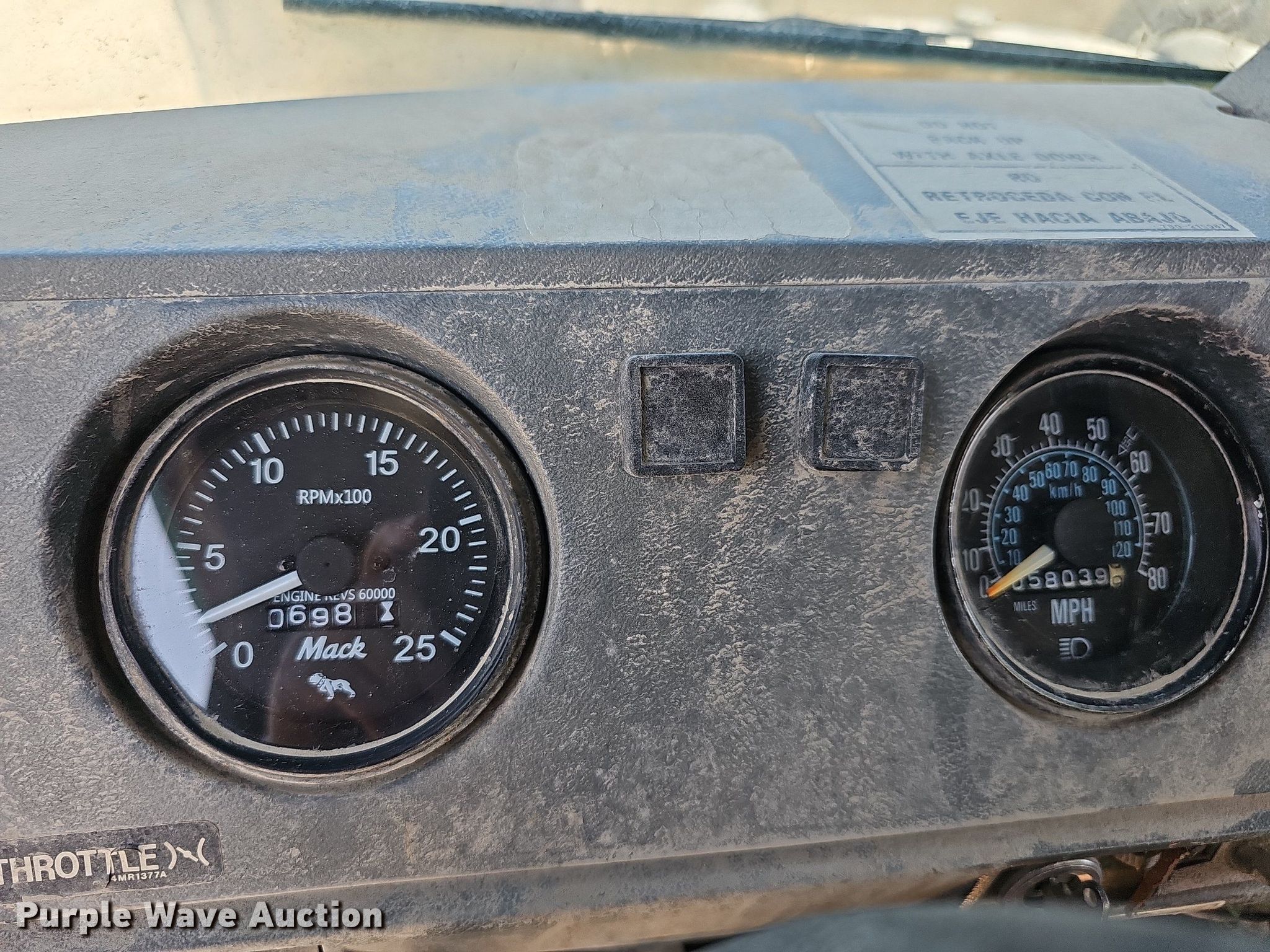 Purple Wave is selling a used Tank Truck or Water Truck in Kansas. This item is a 1992 Mack DM690S water truck with the following: Miles: 58,039 on odometer, Hours: 698 on meter, VIN: 1M2B209C1NM010208