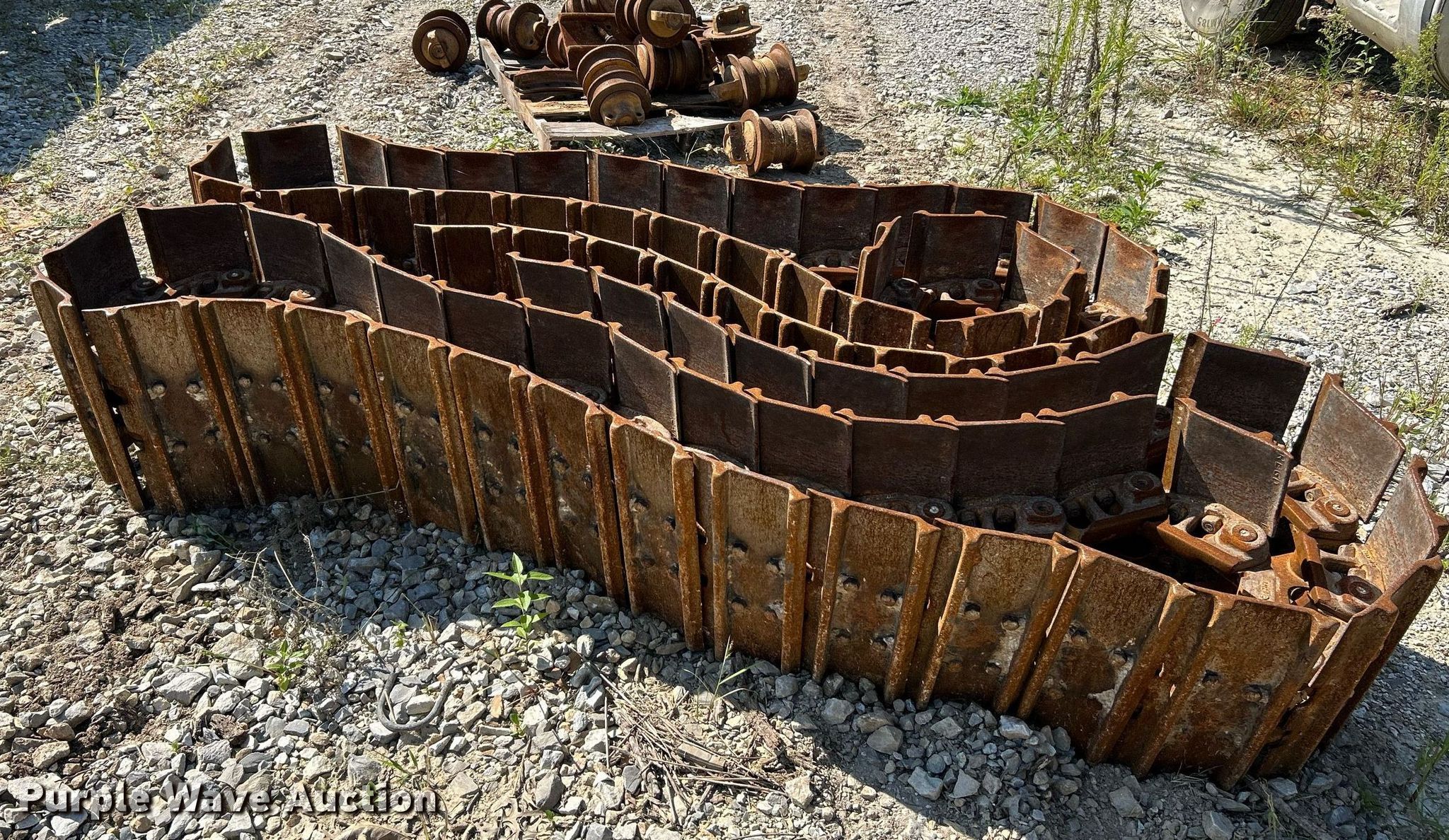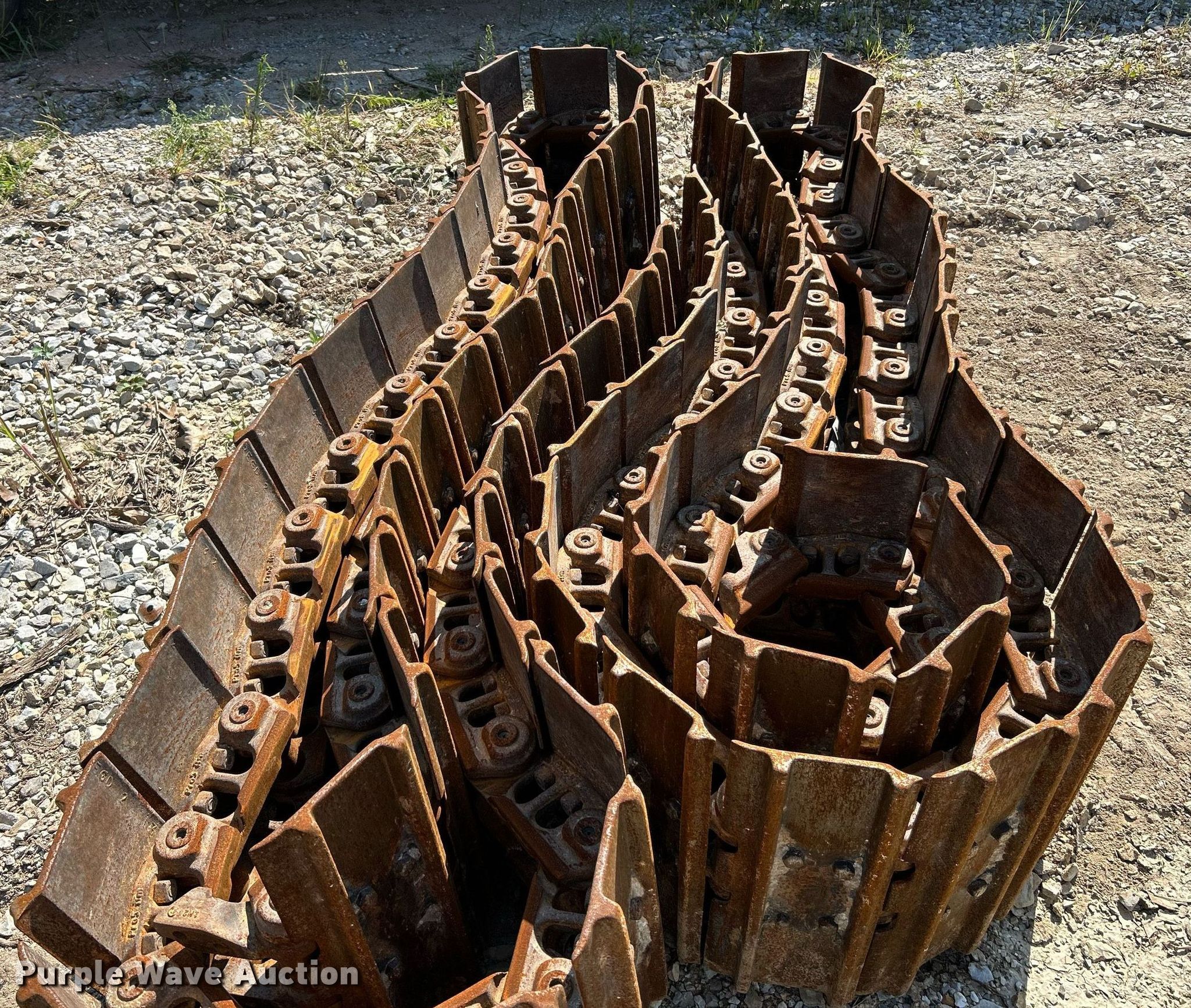 Purple Wave is selling a used Crawler Attach. in Missouri. This item is a ITM track loader undercarriage parts with the following: Tracks, Width: 19.5", Grouser pads: Double, Rollers, Removed from Caterpillar 953D track loader