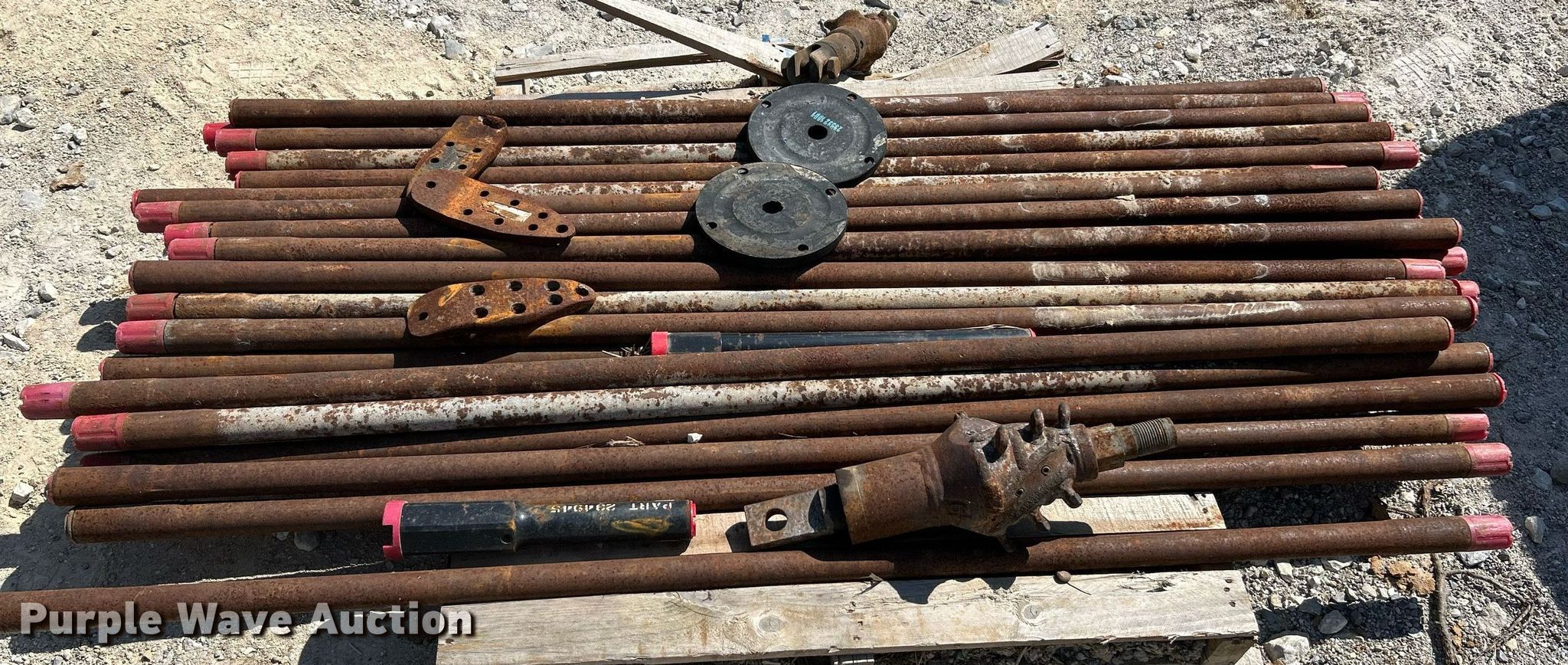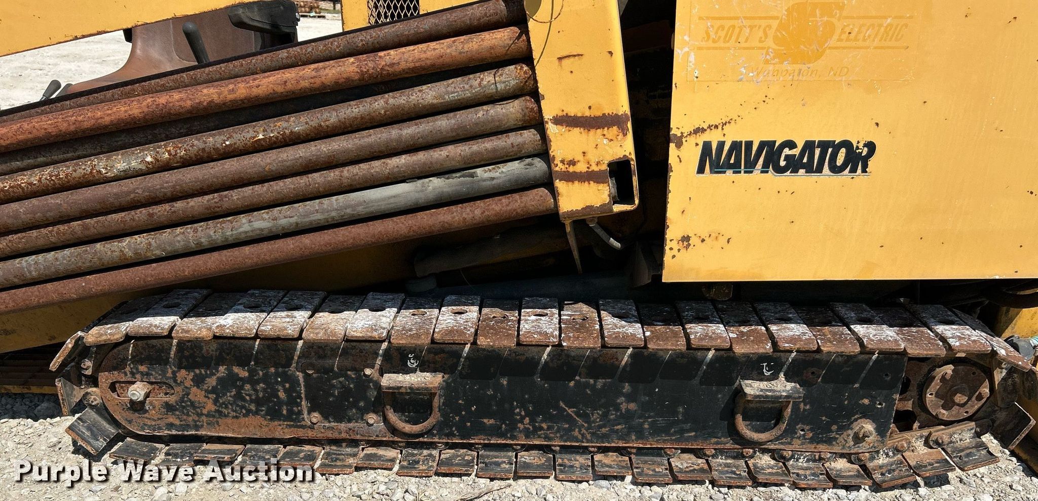 1999 Vermeer D7X11A Navigator directional boring unit. Hours: 2,529 on meter, Serial: 1VRS130N4X1000655, Unit #: 301. Engine Kubota V1505-E, Serial: WW6070, Cylinders: 4, Fuel type: Diesel. Features Water pump Bean A0413C, GPM: 9, On board water capacity: 55 gallons, Drill stems On drill: 30, Additional: 27, Drill stem length: 6' Diameter: 1.66", Rear hydraulic stabilizers, Hydraulic stake down, (2) fluted back reamers. Tracks Width: 9", Steel, Extendable tracks Left. M Turpin Services LLC. Foristell, MO 63348