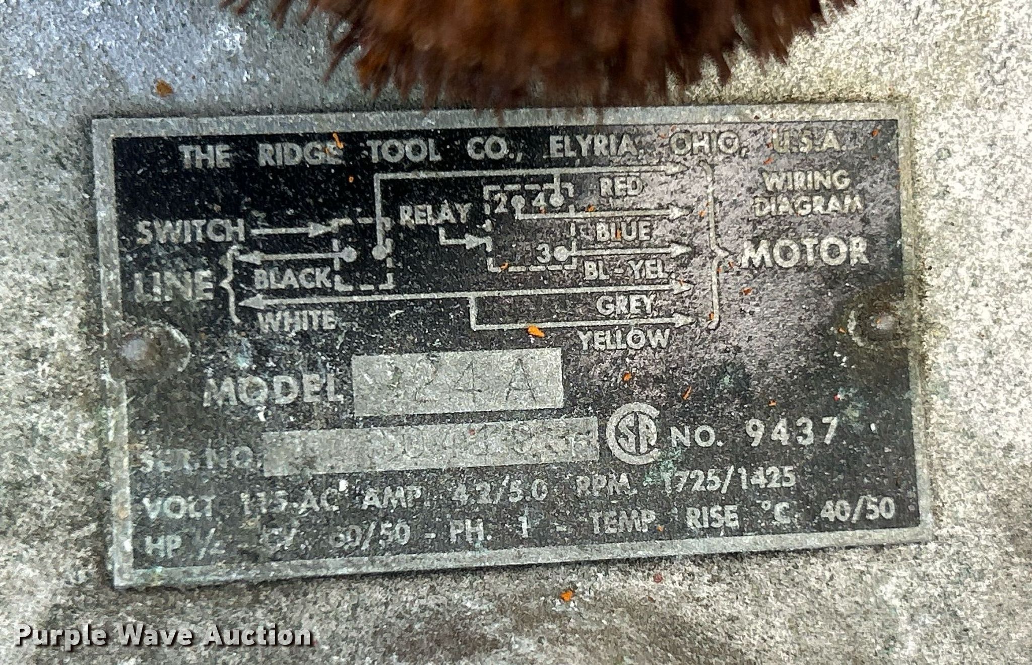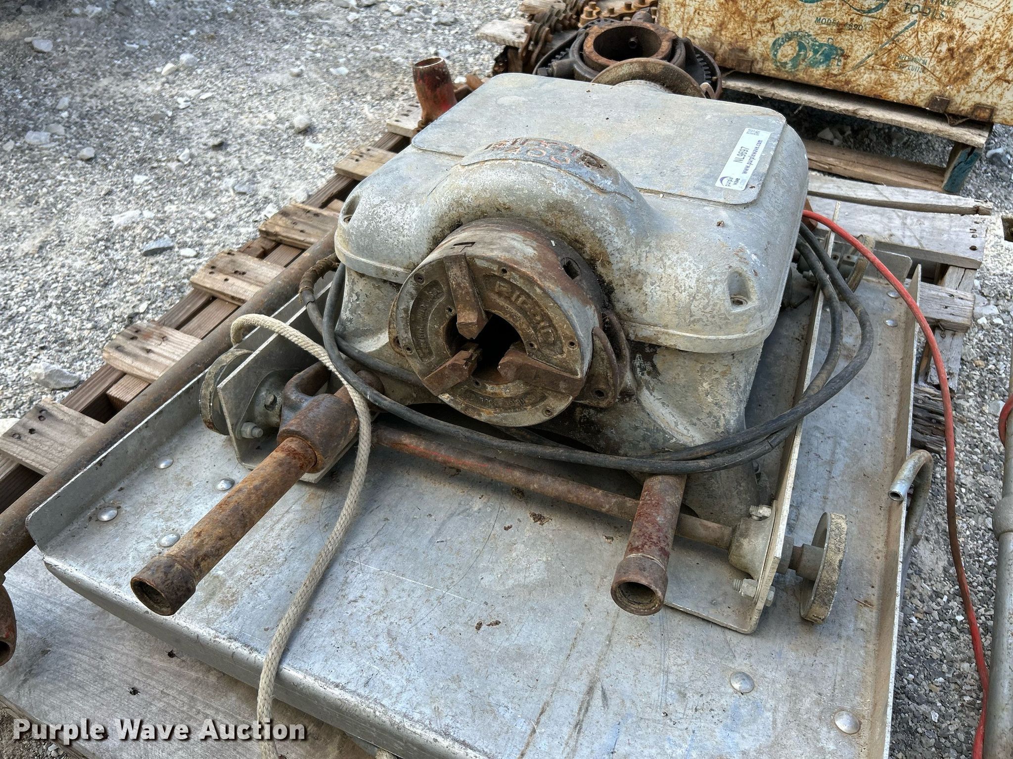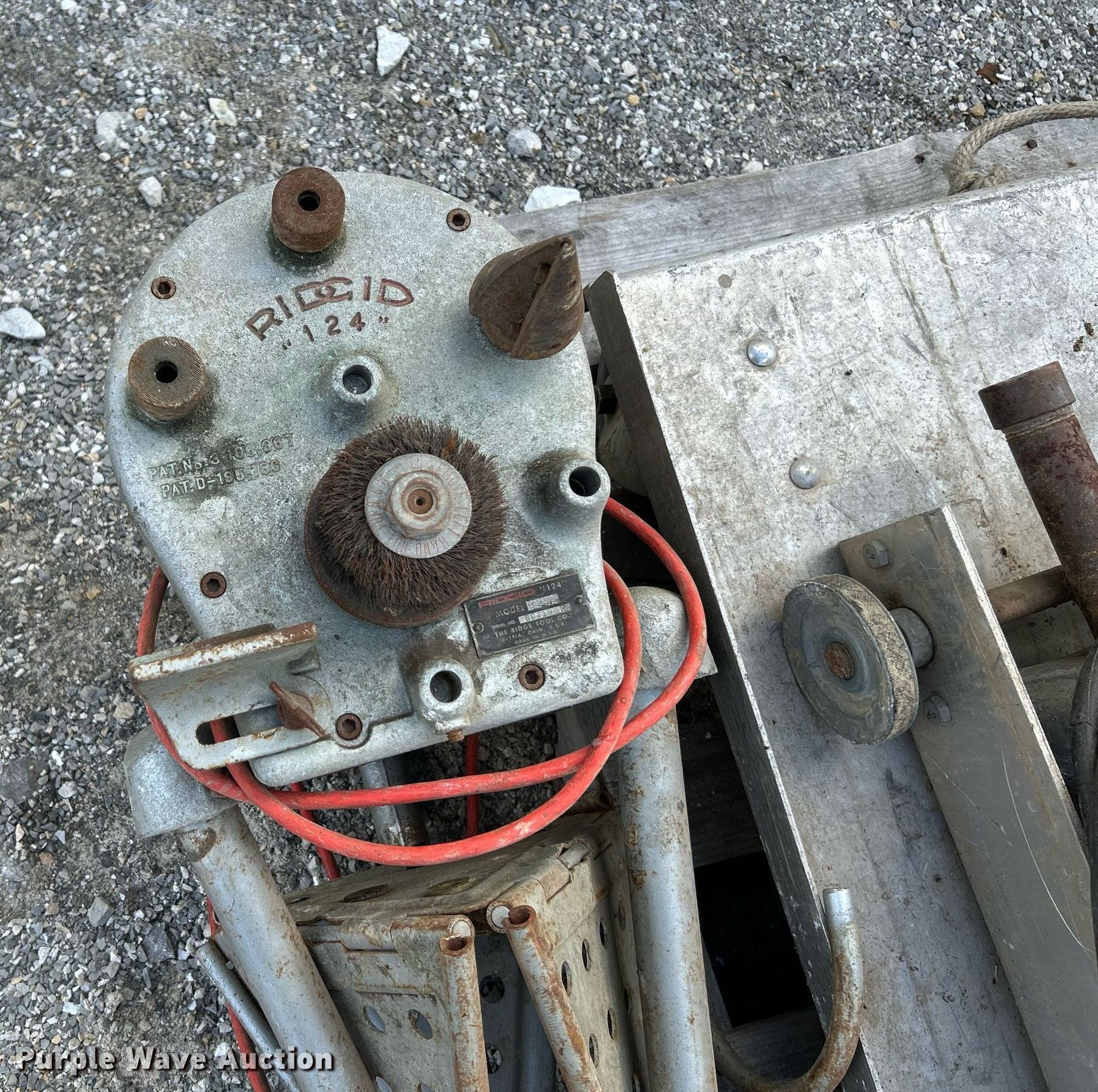 Purple Wave is selling a used Tools in Missouri. This item is a Pipe tools with the following: Ridgid 400 pipe threader, Pipe cutters, Ridgid 124 copper pipe cleaning machine, Stand