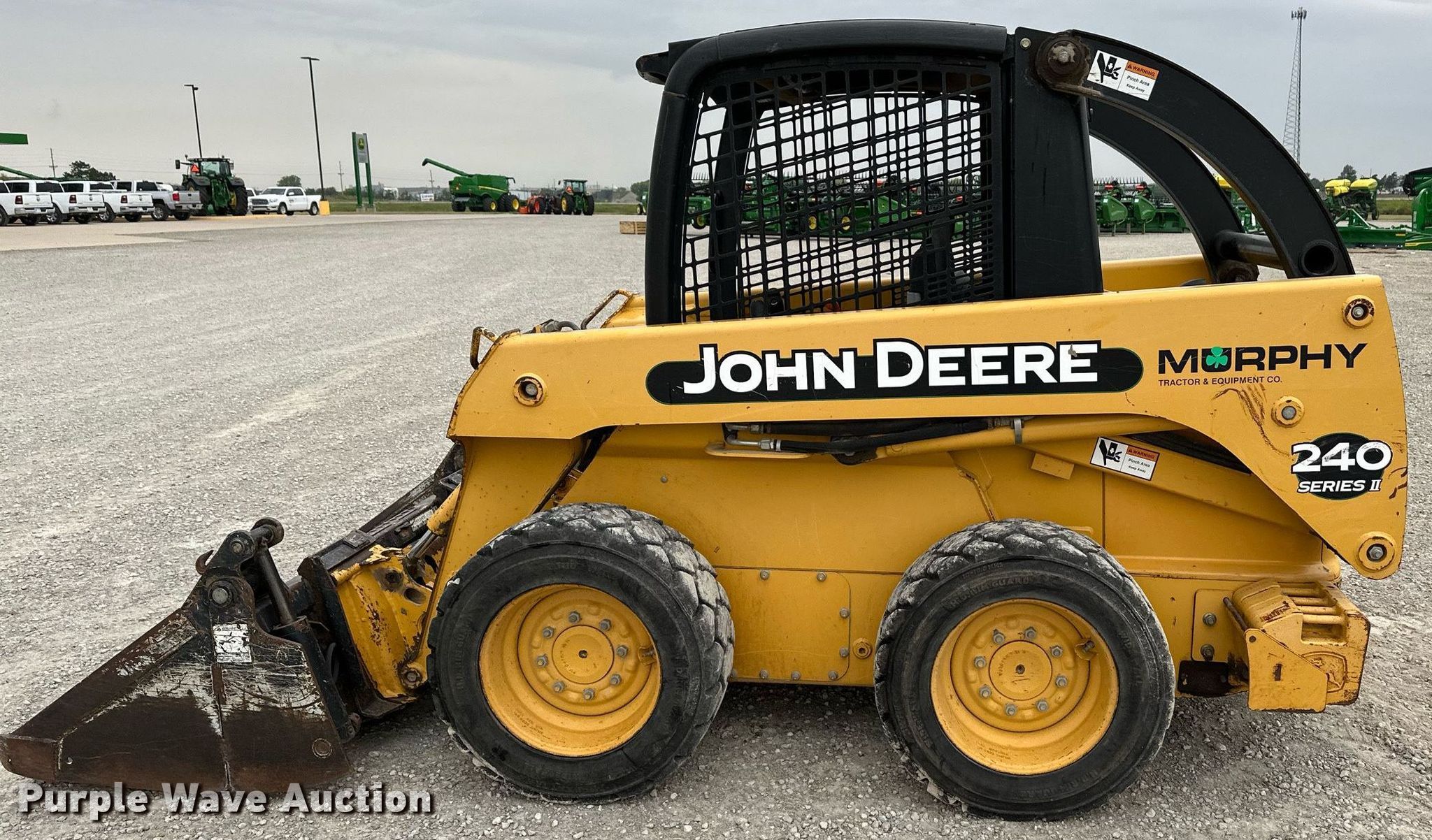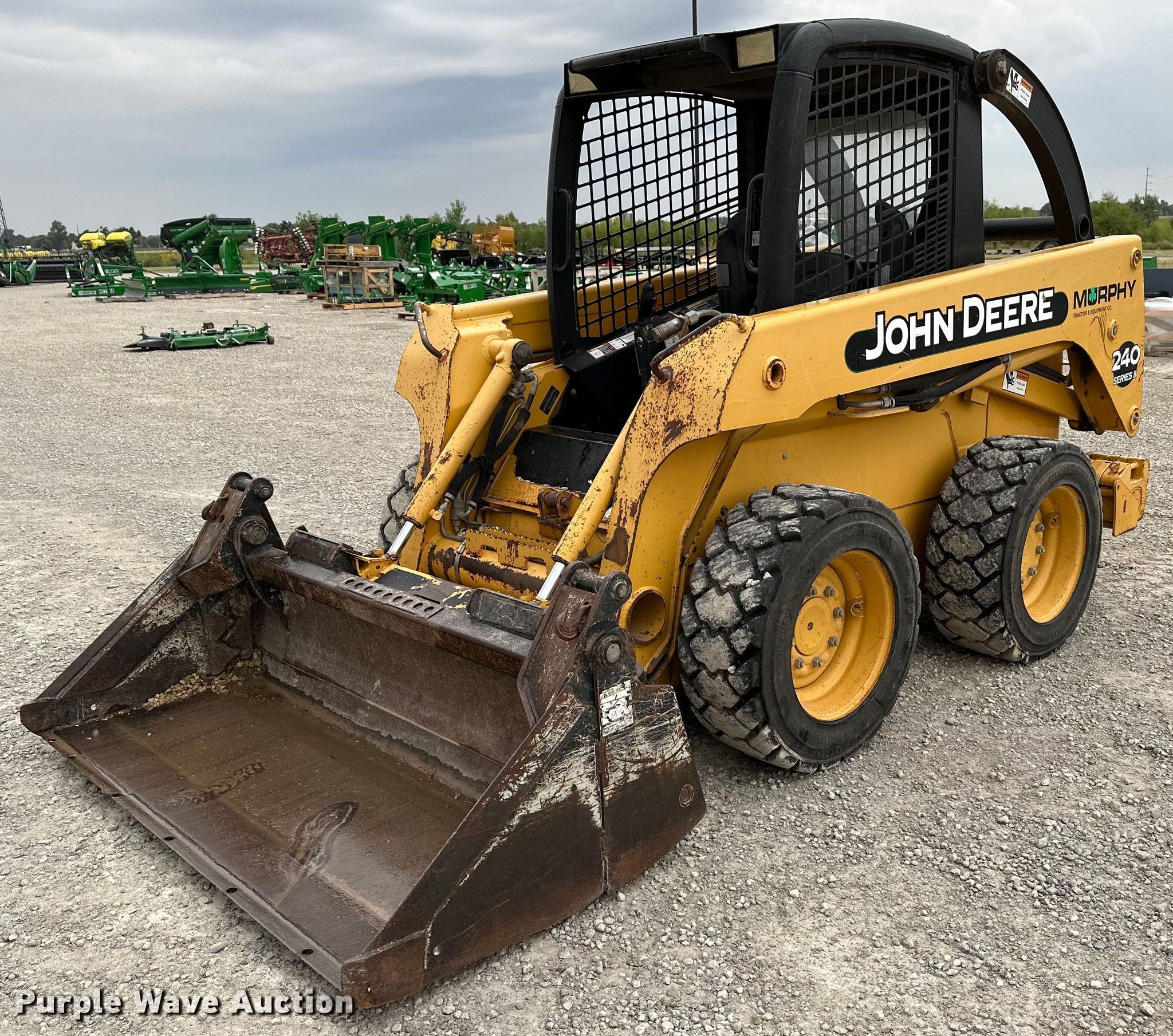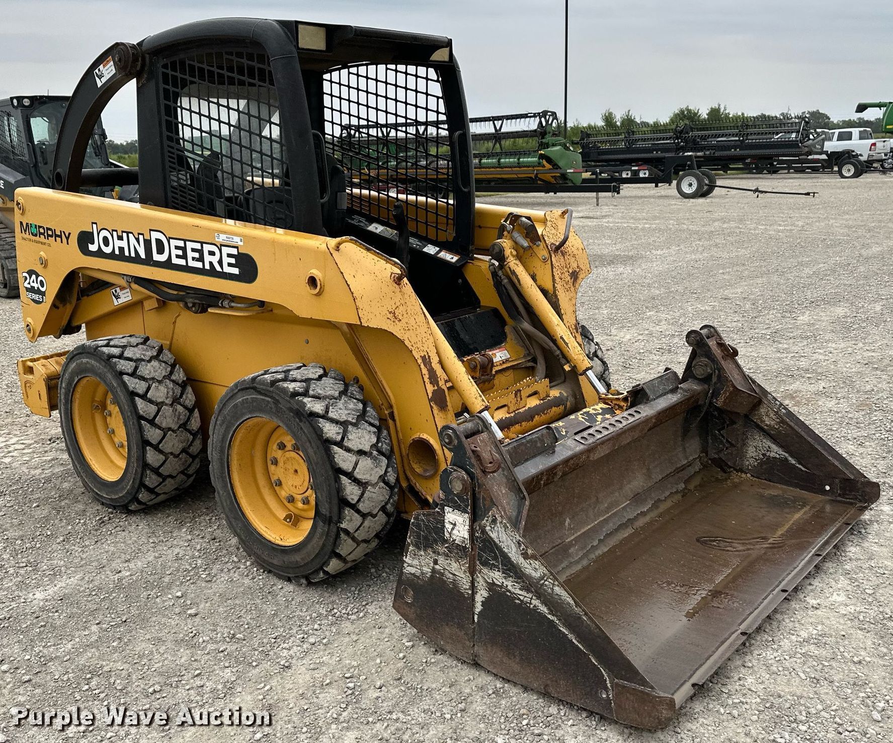 Purple Wave is selling a used Skid Steer Loader in Kansas. This item is a 2004 John Deere 240 Series II skid steer loader with the following: Hours: 472 on meter, Serial: T00240A934656