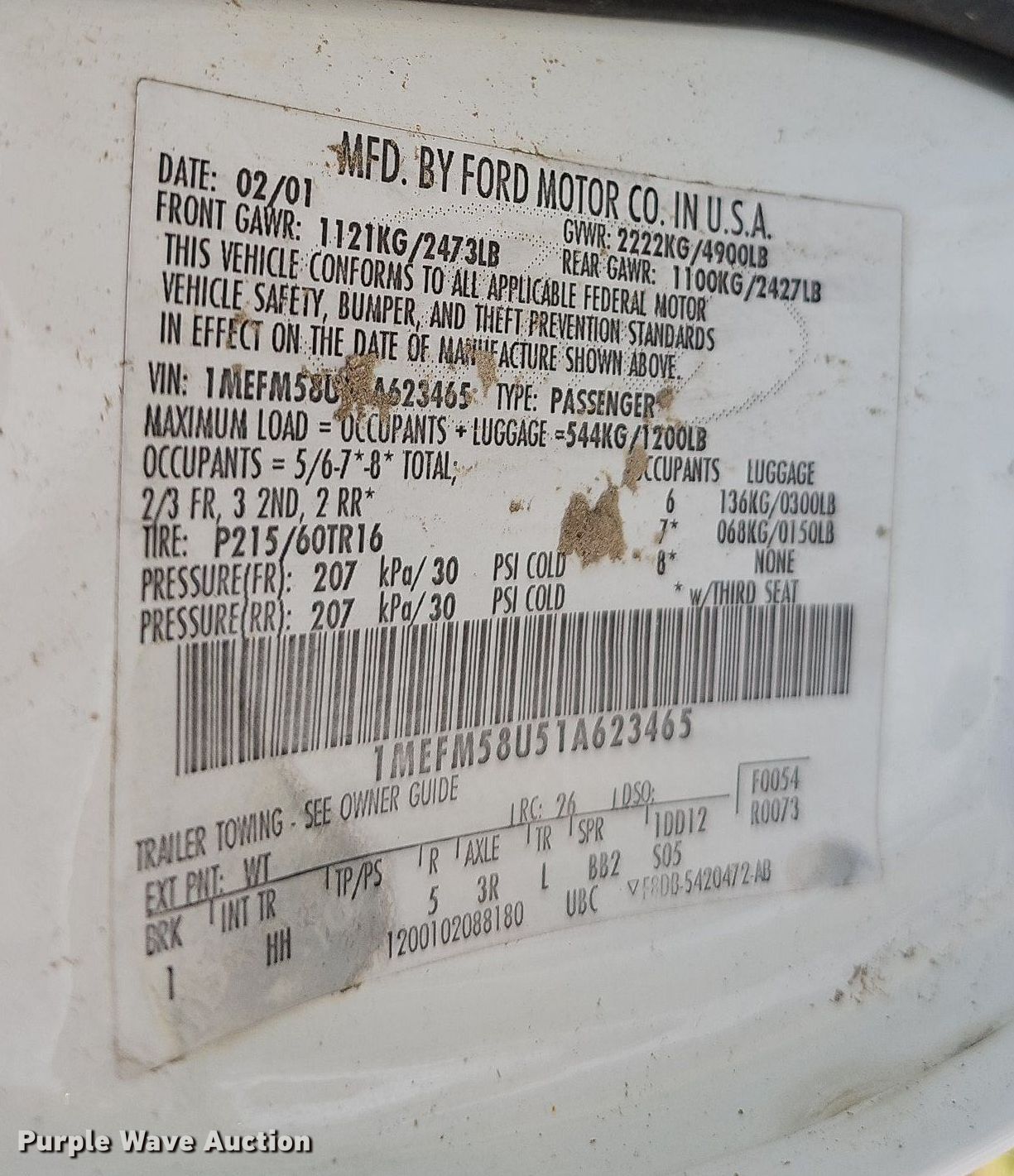 Purple Wave is selling a used Passenger Vehicle in Kansas. This item is a 2001 Mercury Sable GS with the following: Miles: 143,464 on odometer, VIN: 1MEFM58U51A623465
