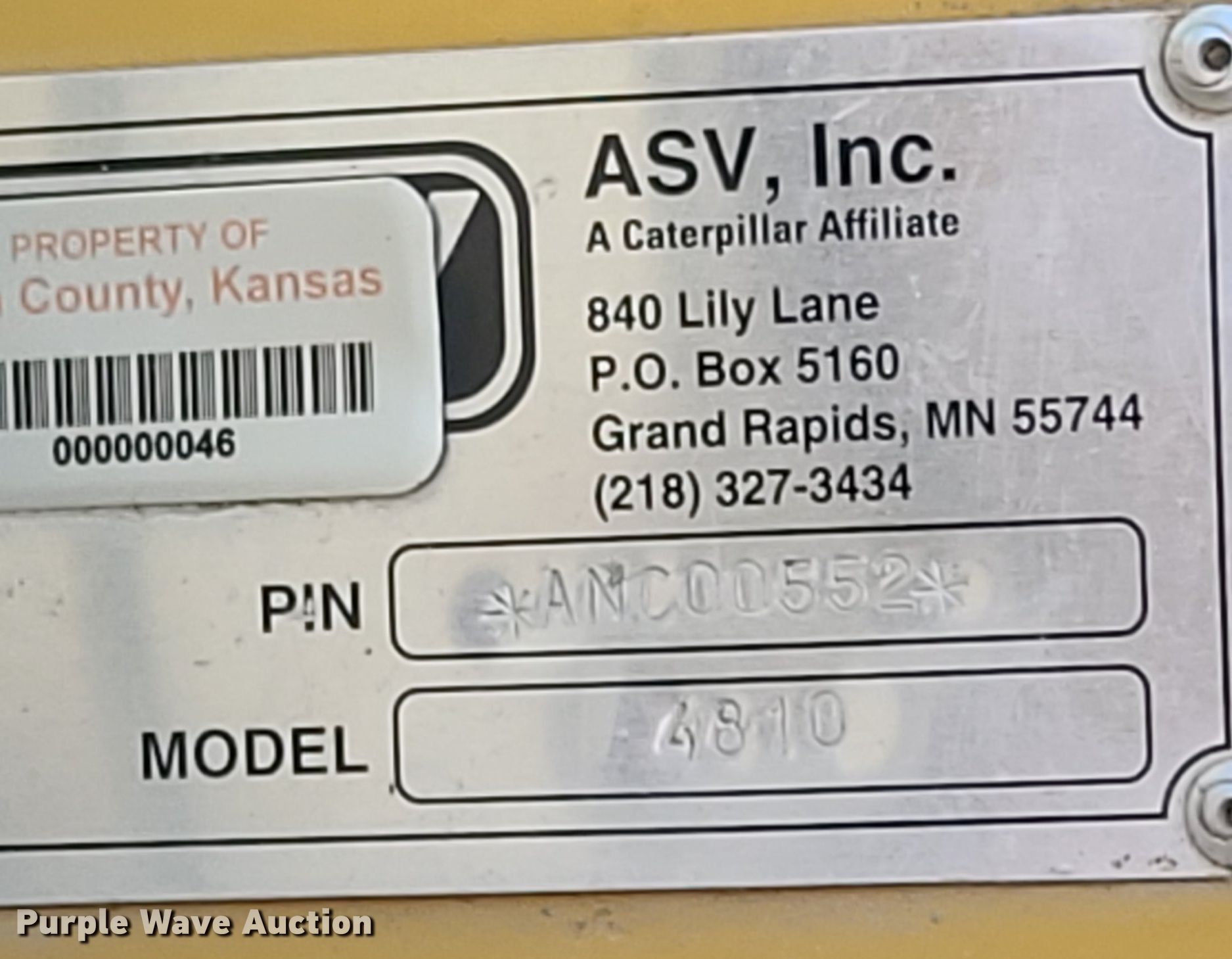 Purple Wave is selling a used Tracked Skid Steer Loader in Kansas. This item is a 2000 ASV Posi-Track 4810 tracked skid steer loader with the following: Hours: 2,795 on meter, Serial: ANC00552
