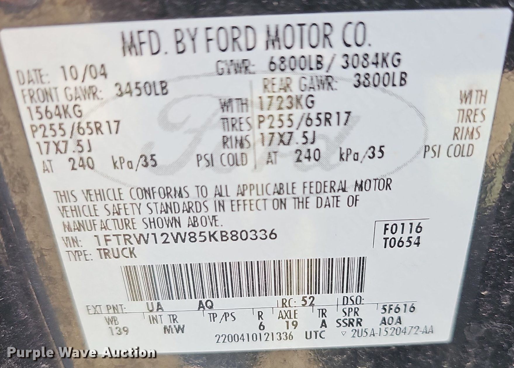 Purple Wave is selling a used 1/2 Ton Pickup or Van in Kansas. This item is a 2005 Ford F150 SuperCrew pickup truck with the following: Miles: 141,857 on odometer, VIN: 1FTRW12W85KB80336