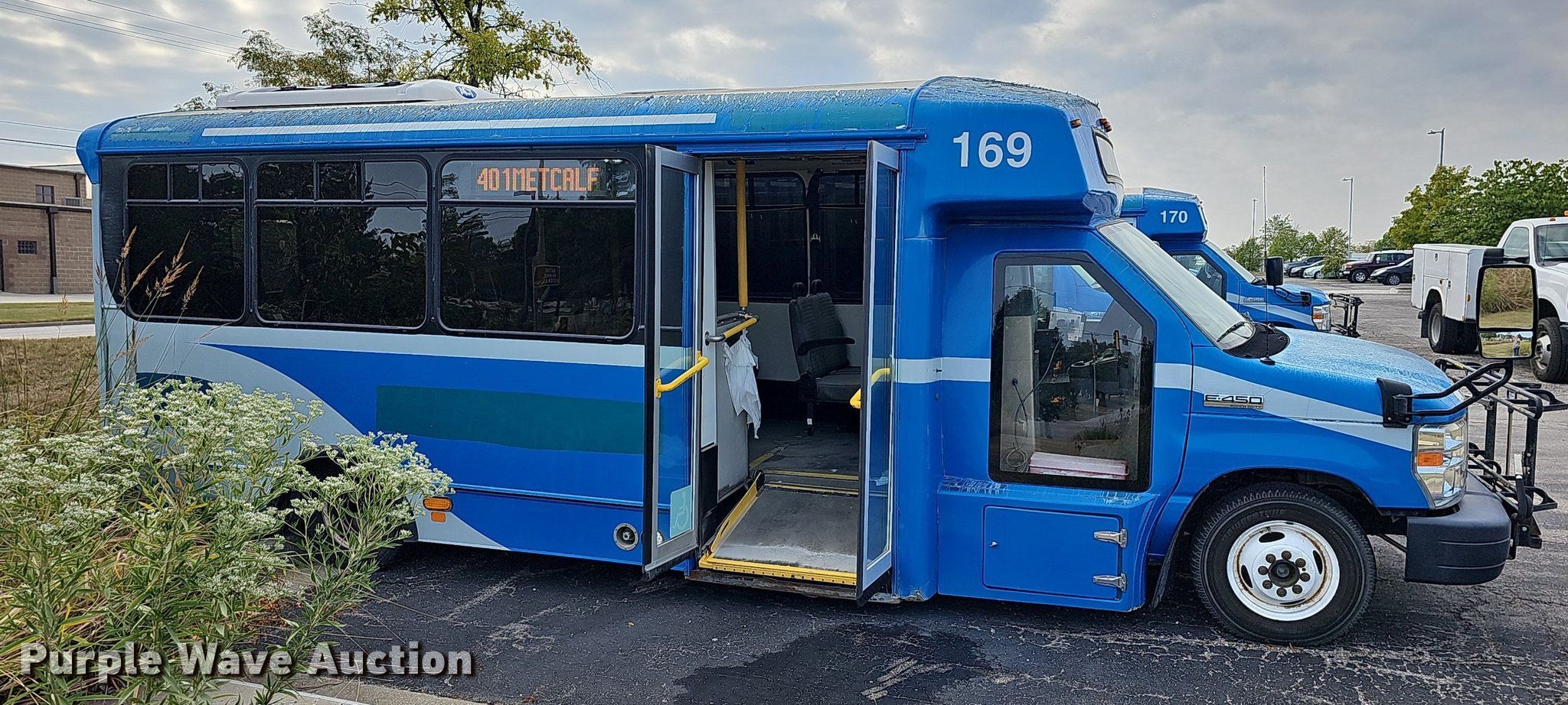 Purple Wave is selling a used Bus in Kansas. This item is a 2015 Ford E450 Super Duty shuttle bus with the following: Miles: 98,951 on odometer, VIN: 1FDFE4FS0FDA34559, Unit #: 169