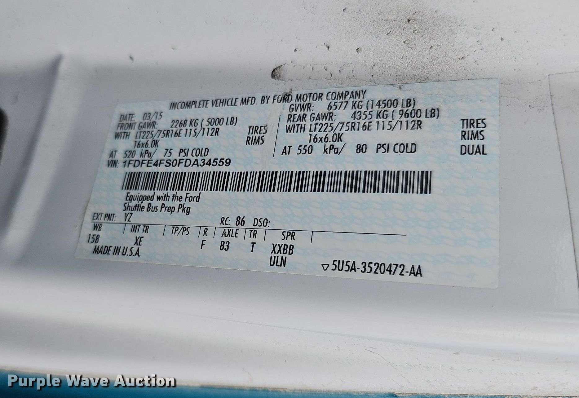 - VIN: 1FDFE4FS0FDA34559