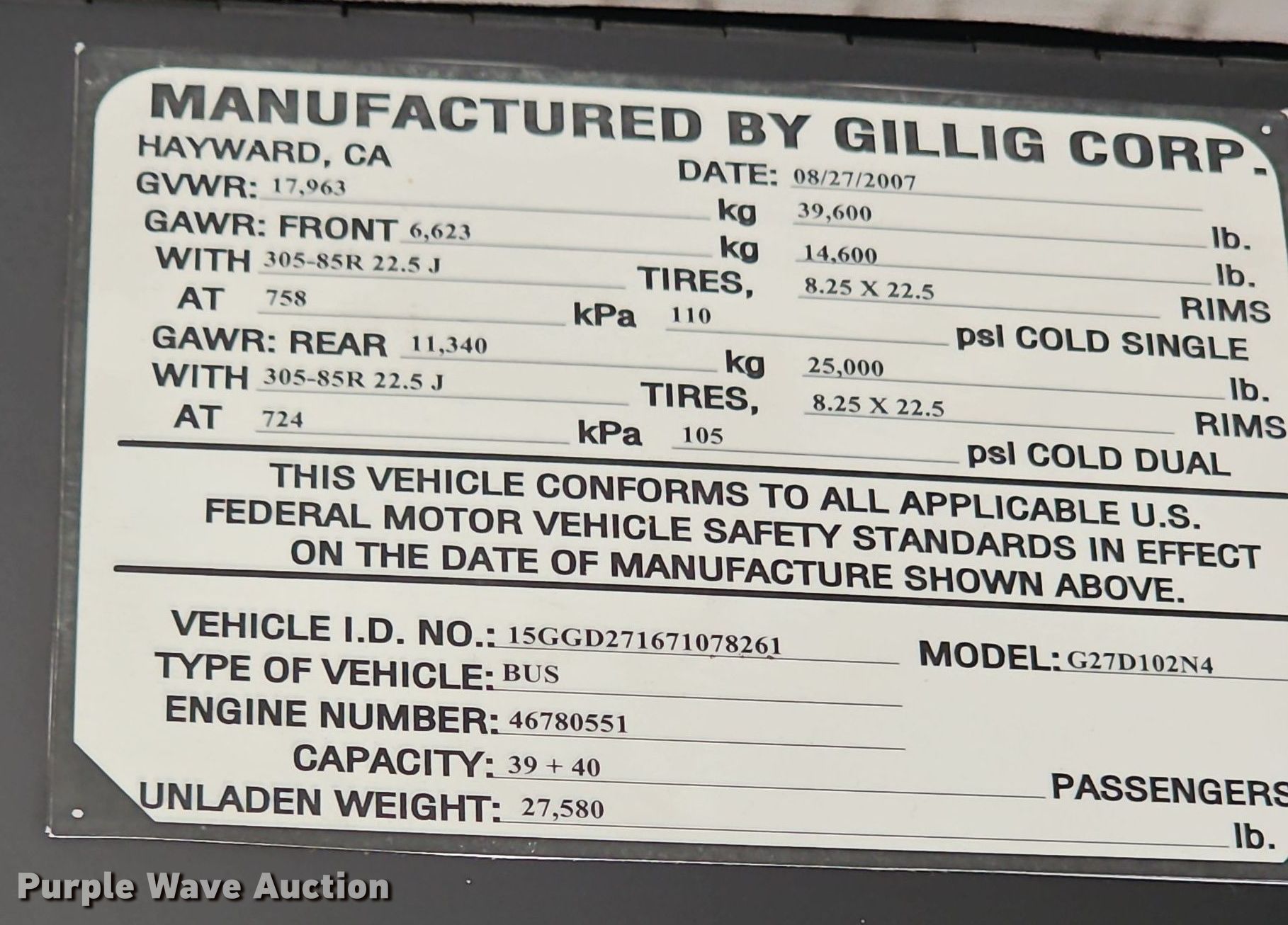 2007 Gillig shuttle bus | SOLD! October 17 Government Auction