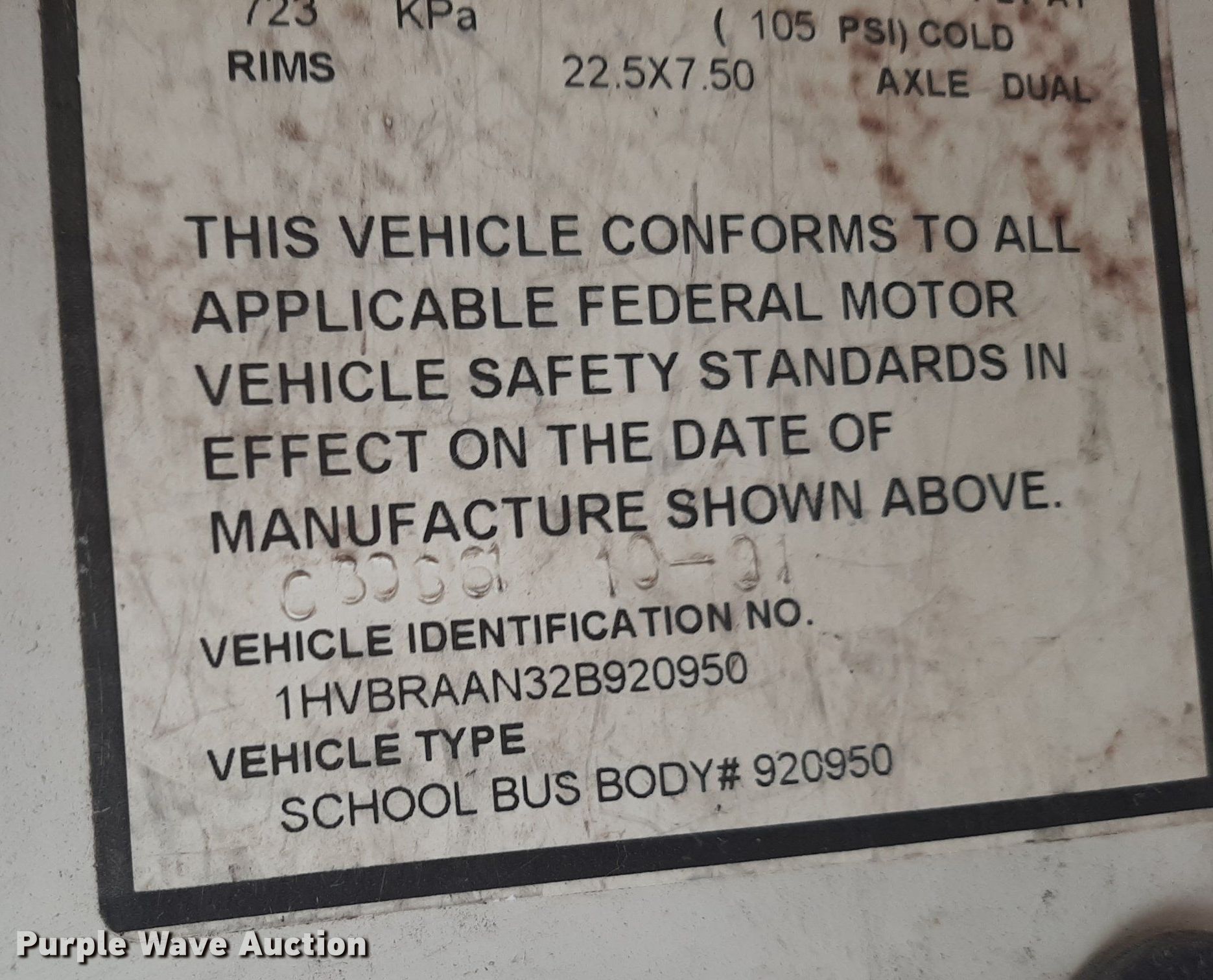 Purple Wave is selling a used Bus in Kansas. This item is a 2002 International 3000 school bus with the following: Miles: 167,693 on odometer, Hours: 11,195 on meter, VIN: 1HVBRAAN32B920950