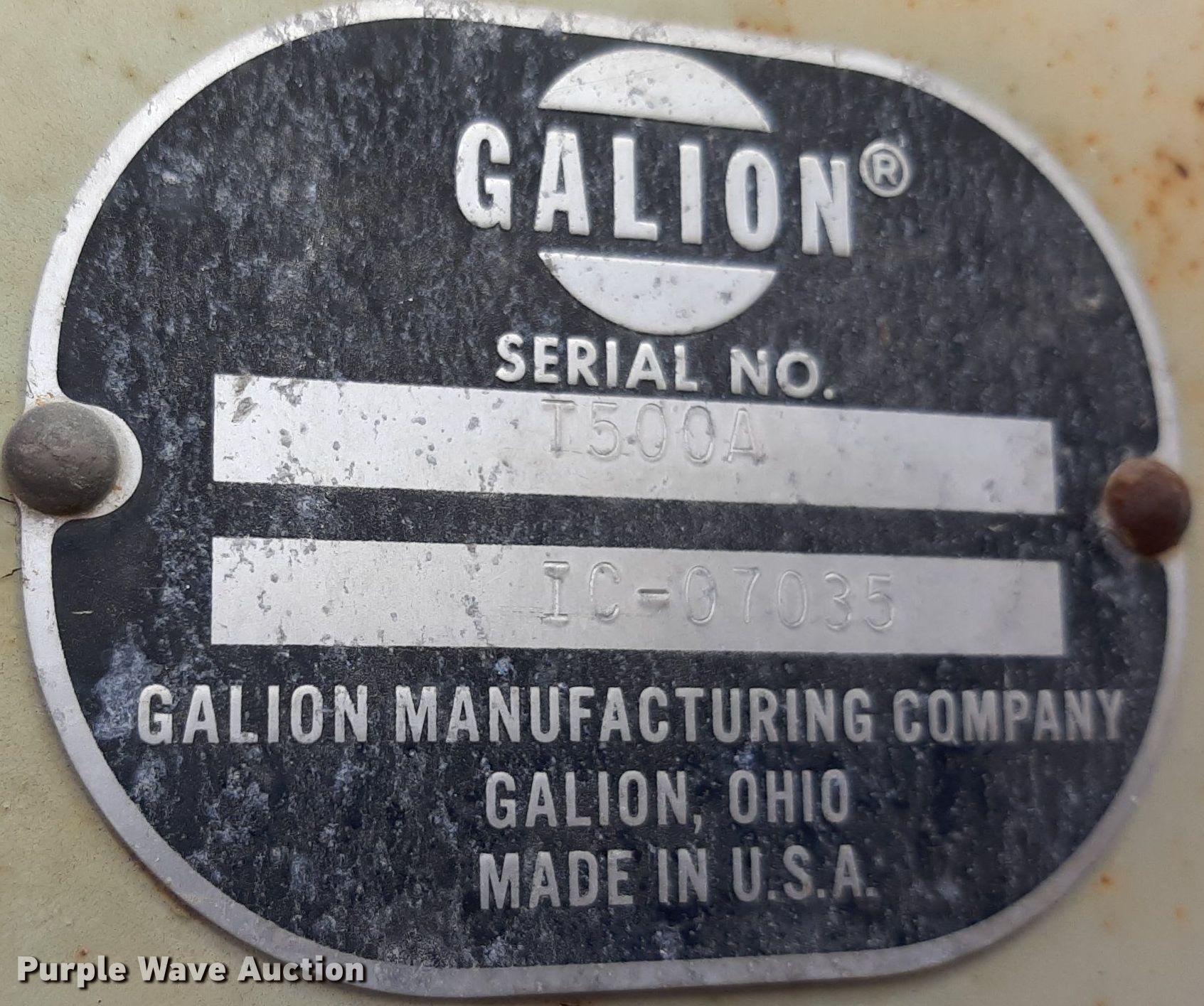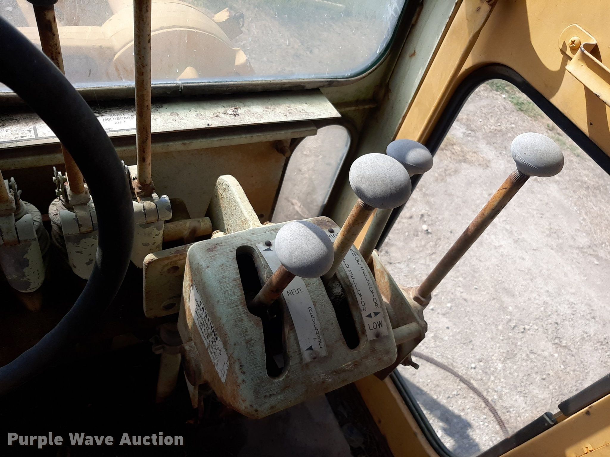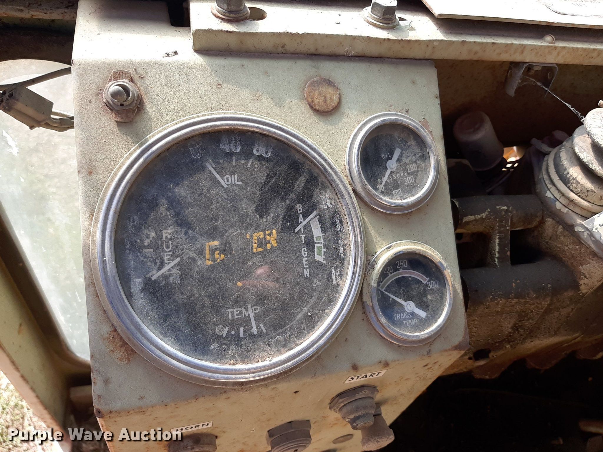 1975 Galion T-500A motor grader. Hours: 7,236 on meter, Serial: IC-07035. Engine International, Cylinders: 6, Fuel type: Diesel. Transmission Powershift. Chassis Rigid frame. Operators station Enclosed cab, Hydraulic control valves: 7. Features Moldboard: Tip control, Moldboard total length: 12'. Tires Size: 14.00-24. Notes Non-operational unit. 221 South Main Street. Moline, KS 67353