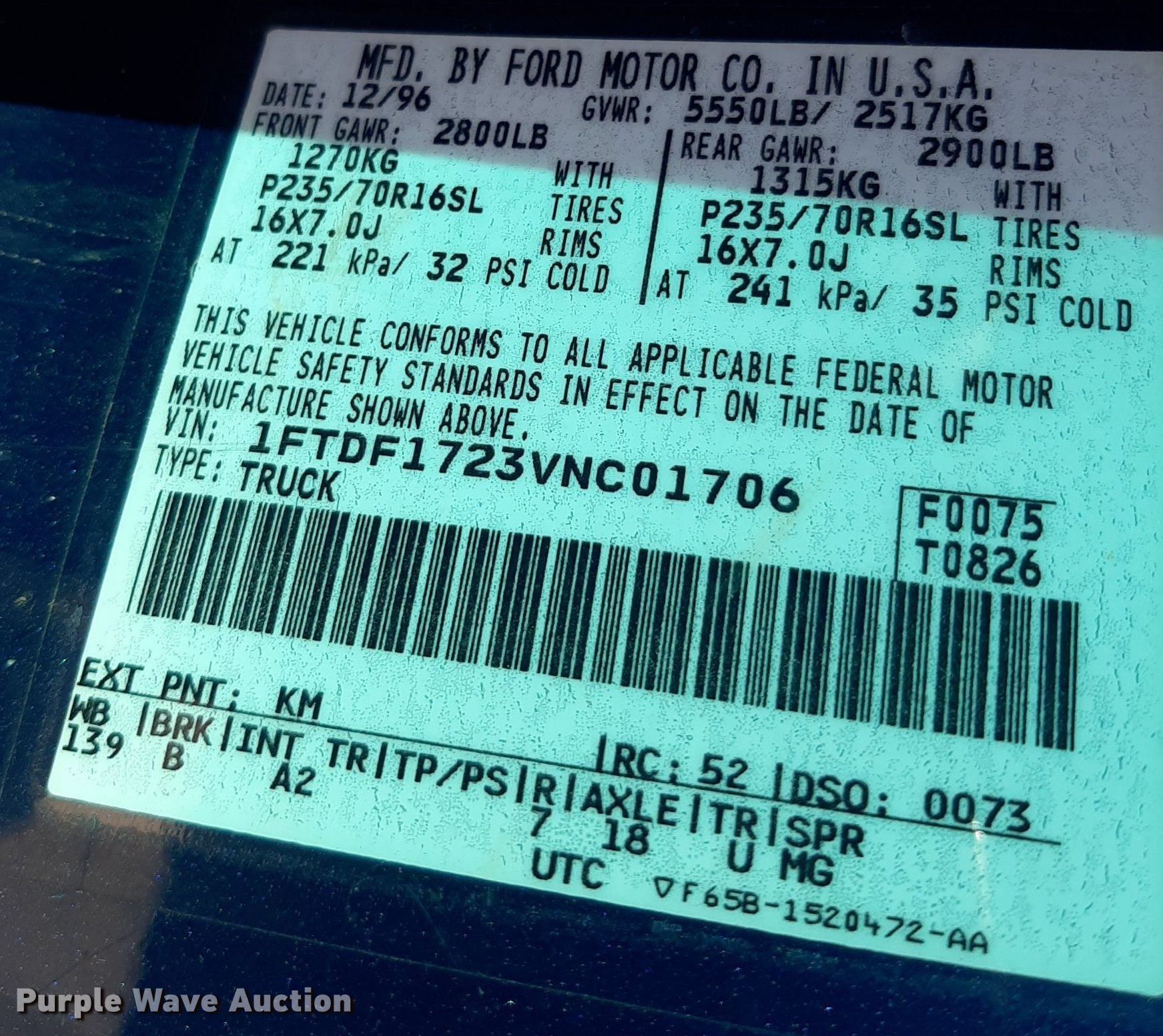 - VIN: 1FTDF1723VNC01706