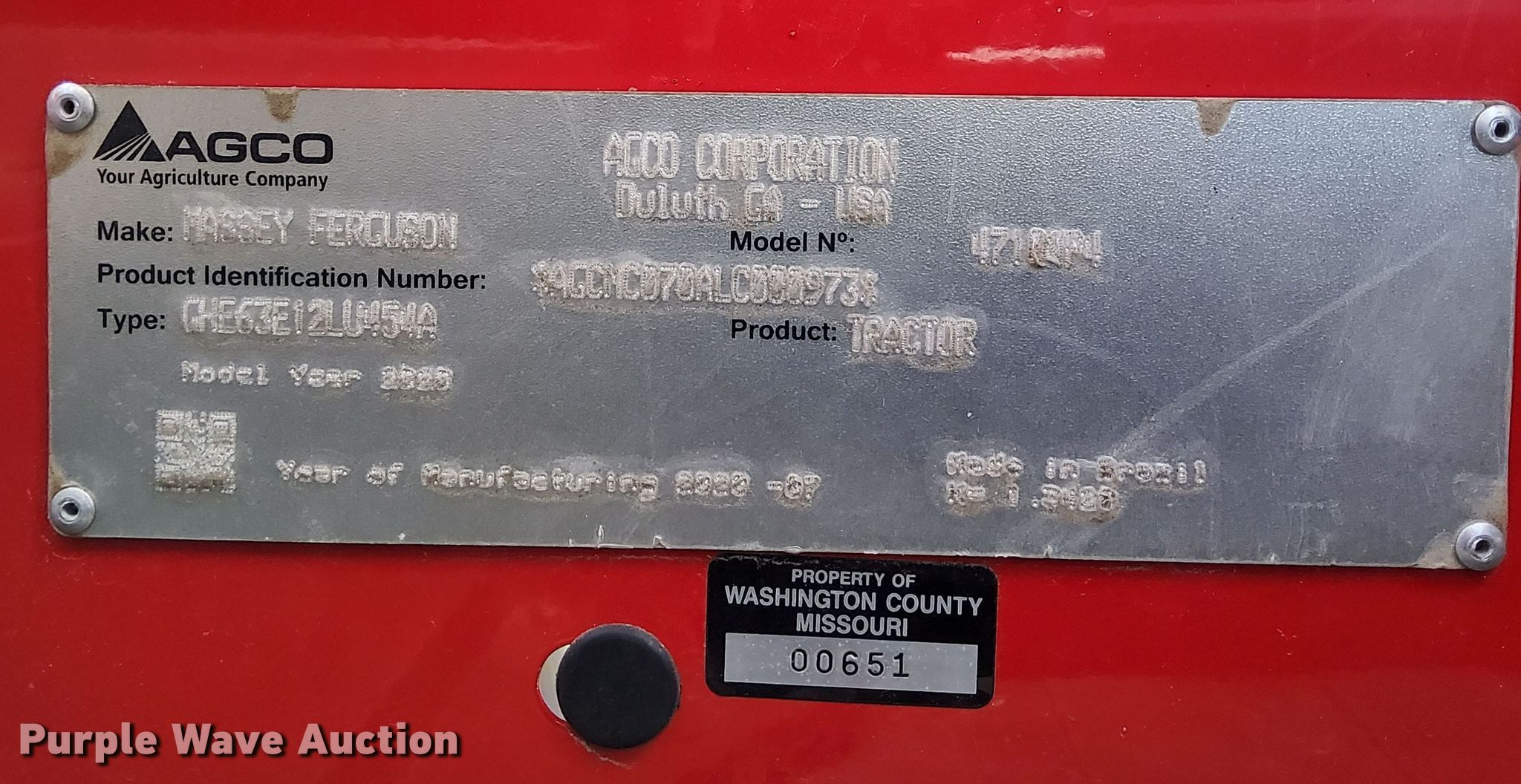 Purple Wave is selling a used Tractor in Missouri. This item is a 2020 Massey Ferguson 4710 MFWD tractor with the following: Hours: 203 on meter, Miles or hours may vary, unit still in use, Serial: AGCMC070ALC0309773