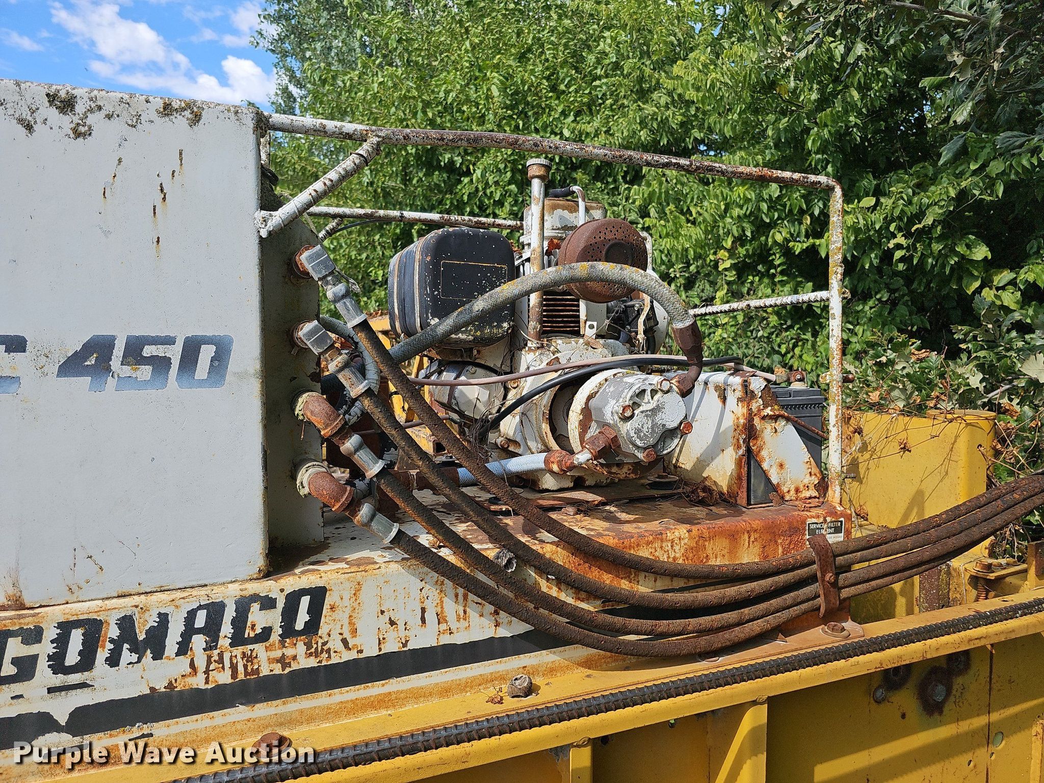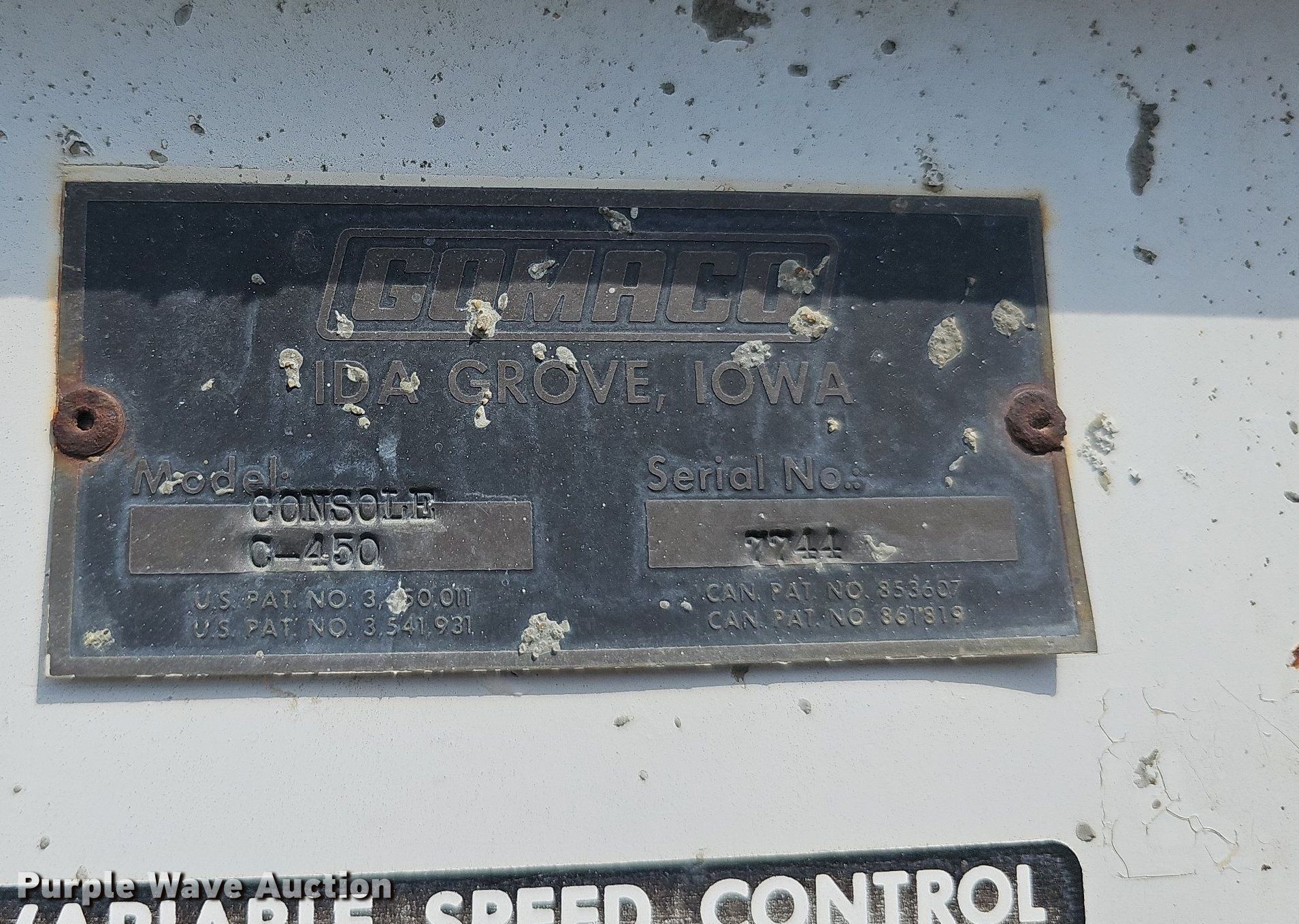 Gamaco Console C450 bridge deck finish machine. Serial: 7744. Engine Tecumseh XL Xtra Life, Cylinders: 1, Fuel type: Gas. Transmission Hydrostatic. Features Paving width: 4', Auger Length: 20", Diameter: 8", Smoothing drum Length: 48". Notes Finish drum motor missing, Hydraulic lines dry rotted, Non-operational unit. 24105 Missouri 111. Rock Port, MO 64482