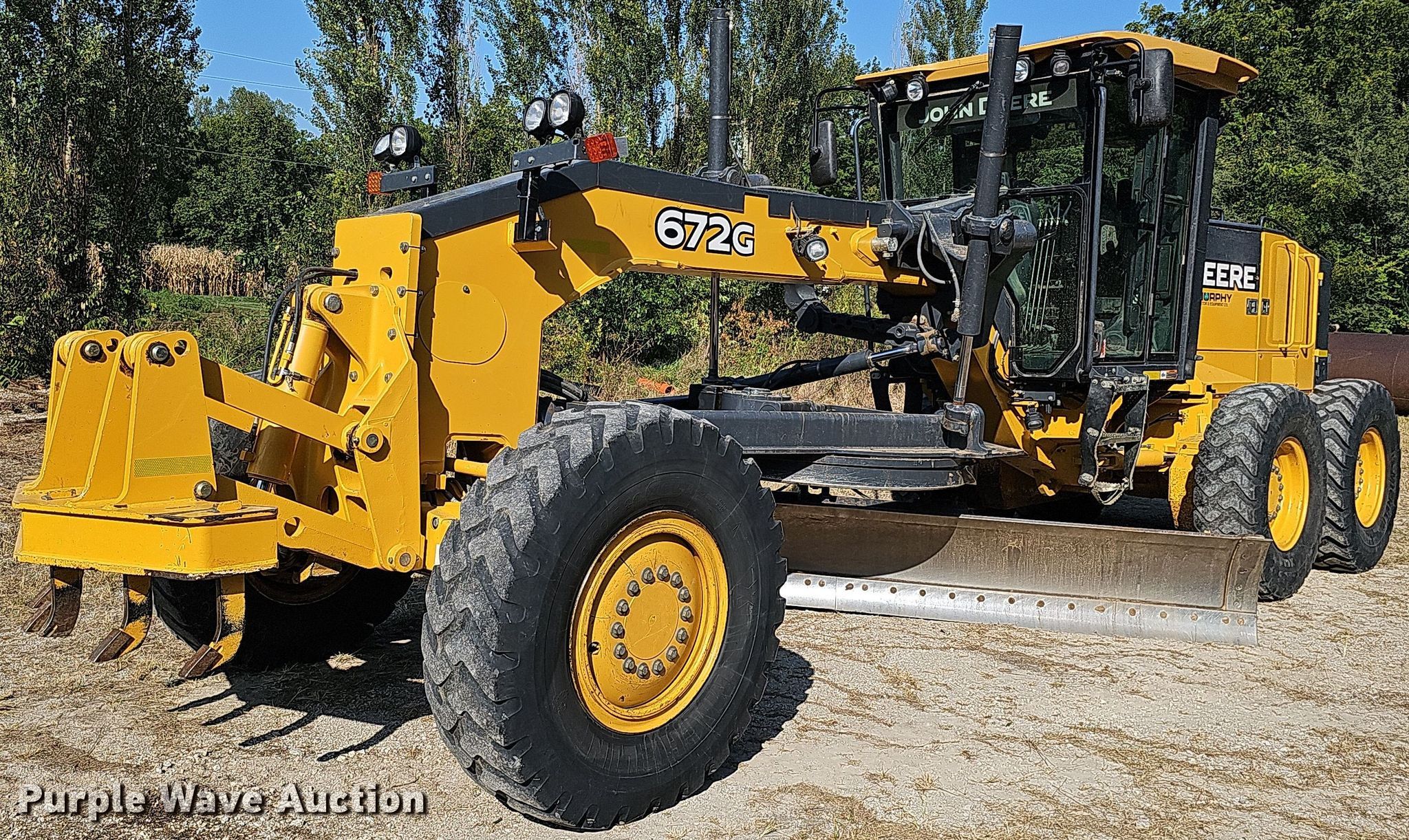 Purple Wave is selling a used Motor Grader in Missouri. This item is a 2010 John Deere 672G motor grader with the following: Hours: 9,153 on meter, Serial: 1DW672GXJA0629482