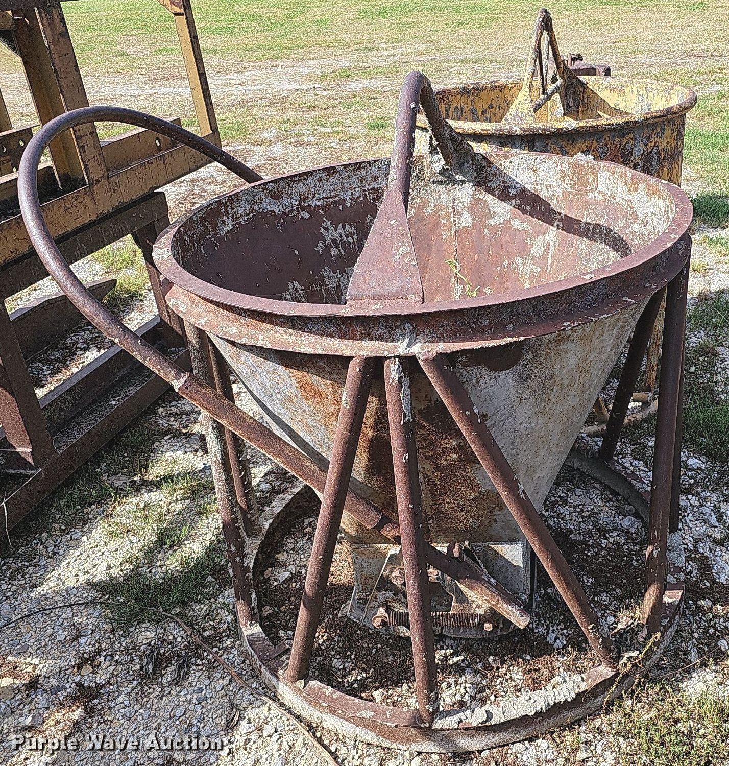 Purple Wave is selling a used Concrete Dispenser in Missouri. This item is a (2) concrete buckets with the following: 38" D x 40" H, 44" D x 38" H