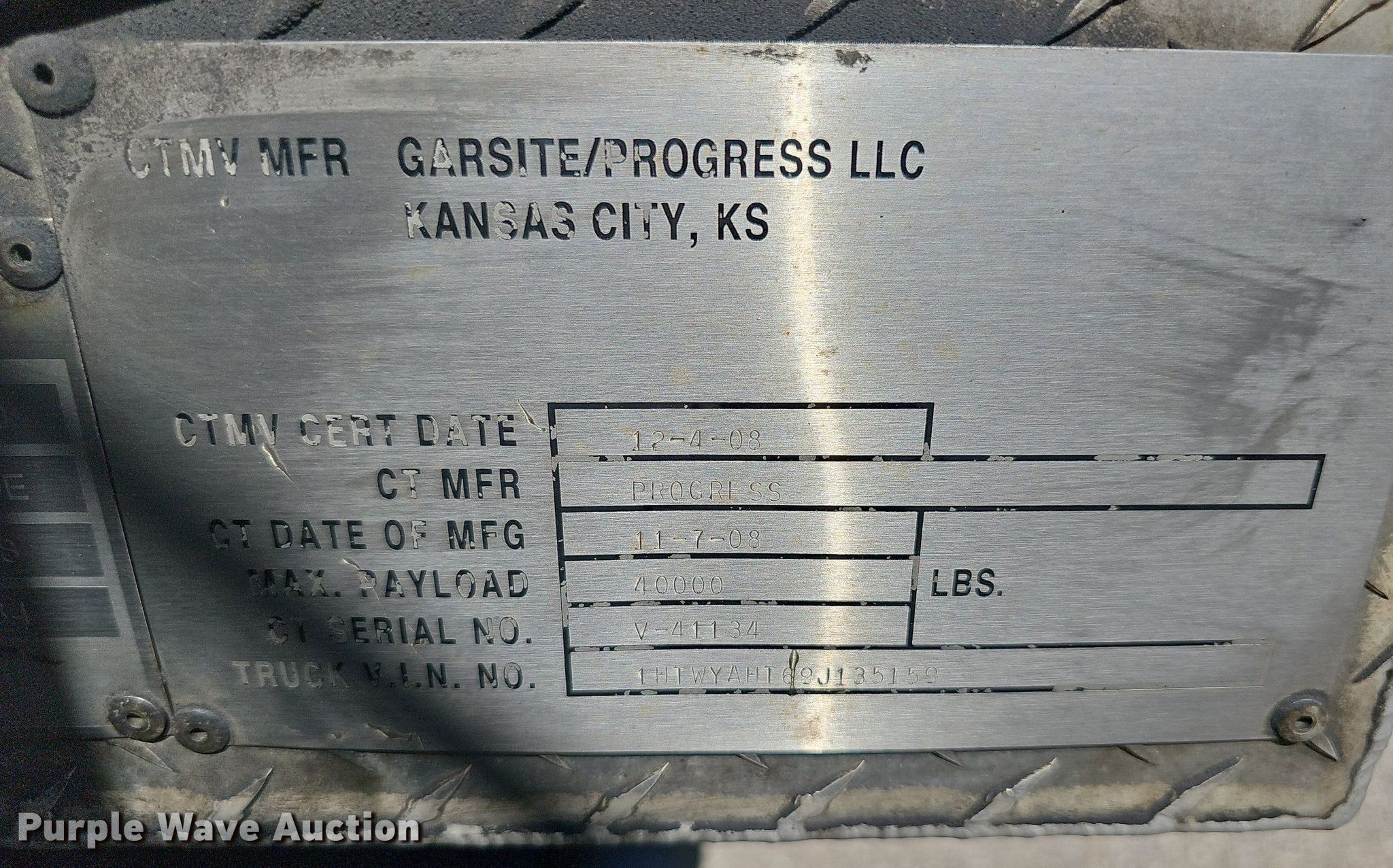 2009 International WorkStar 7600 vacuum truck. Miles: 286,824 on odometer, Hours: 12,788 on meter, VIN: 1HTWYAHT69J135159, Unit #: JCW2123. Engine Cummins ISM M11, Displacement: 11.0L, Cylinders: 6, Fuel type: Diesel. Transmission Allison , Automatic. Chassis Axles: Tandem, Suspension: Air, Brakes: Air, PTO, Wet kit, GVWR: 66,000 lbs, Wheelbase: 238". Interior AC, Heat, Heated mirrors, Cruise control. Features Tank bed 2008 Progress VA72, Serial: V41134, Capacity: 5,000 gallons, Top hatches: 2, Rear outlet: 4". Tires Front: 315/80R22.5, Rear: 11R22.5, Brand: Sumitomo, Bridgestone. Notes Engine issues, may need overhaul, Radiator issues, Turbo issues, Unknown operating condition of pump, Unit must be towed or hauled, Non-operational unit. Kansas title. Johnson County, KS. Olathe, KS 66061