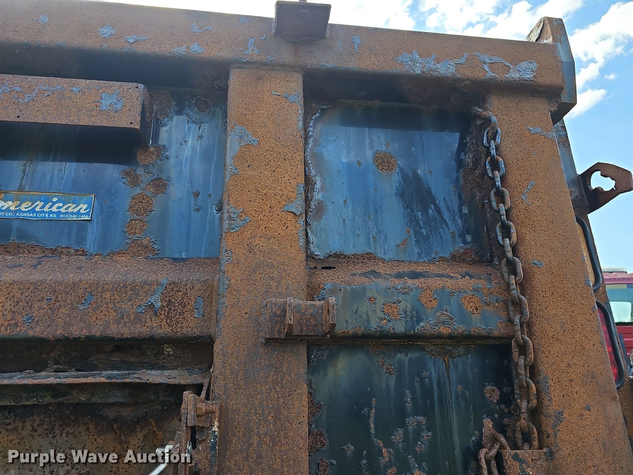 2005 International 7300 dump truck. Miles: 98,715 on odometer, Hours: 5,519 on meter, VIN: 1HTWAAAR95J050880, Unit #: PWK4452. Engine International DT466, Displacement: 7.6L, Cylinders: 6, Fuel type: Diesel. Transmission Allison , Automatic. Chassis Axles: Single, Suspension: Spring, Brakes: Air, Front mount PTO, GVWR: 37,000 lbs FAWR: 14,000 lbs, RAWR: 23,000 lbs, Wheelbase: 165". Interior AC, Heat, Heated mirrors, Cruise control. Features Dump bed American, 10' 11" L x 8' W, Side height: 30", Bed type: Steel, Roll tarp, Ram: Single , End gate: Air operated, Interior 2' W bed roller chain. Tires Size: 12R22.5. Notes Bed rusted, Windshield chipped or cracked, Dead battery, Possible engine issues, will not stay running. Kansas title. Johnson County, KS. Olathe, KS 66061