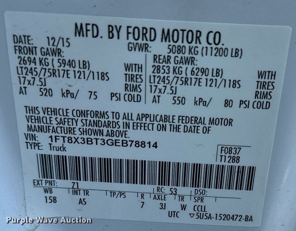 - VIN: 1FT8X3BT3GEB78814