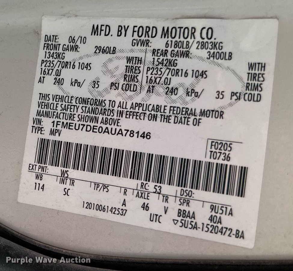Purple Wave is selling a used Passenger Vehicle in Missouri. This item is a 2010 Ford Explorer with the following: Miles: 178,217 on odometer, VIN: 1FMEU7DE0AUA78146