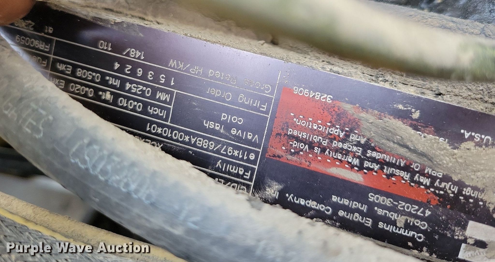 1999 Gradall XL4100 wheeled excavator. Miles: 50,928 on odometer, Hours: 2,373 on meter, Hours: 8,159 on second meter, Serial: 0413503, Unit #: 335. Engine Cummins C8.3-C, Serial: 45811869, Displacement: 8.3L, Cylinders: 6, Fuel type: Diesel, HP: 230, kW: 172. Upper engine Cummins B5.9-C, Serial: 45819629, Displacement: 5.9L, Cylinders: 6, HP: 148. Transmission Eaton Fuller, Manual, Speed: 10. Chassis Brakes: Air, Suspension: Walking beam. Operators station Enclosed cab, AC, Heat. Features Boom length: 27', Bucket Width: 64", Cutting edge: Bolt-on. Tires Front: 385/65R22.5, Rear: 11R22.5. Cass County Secondary Roads. 18 Commerce Street. Atlantic, IA 50022