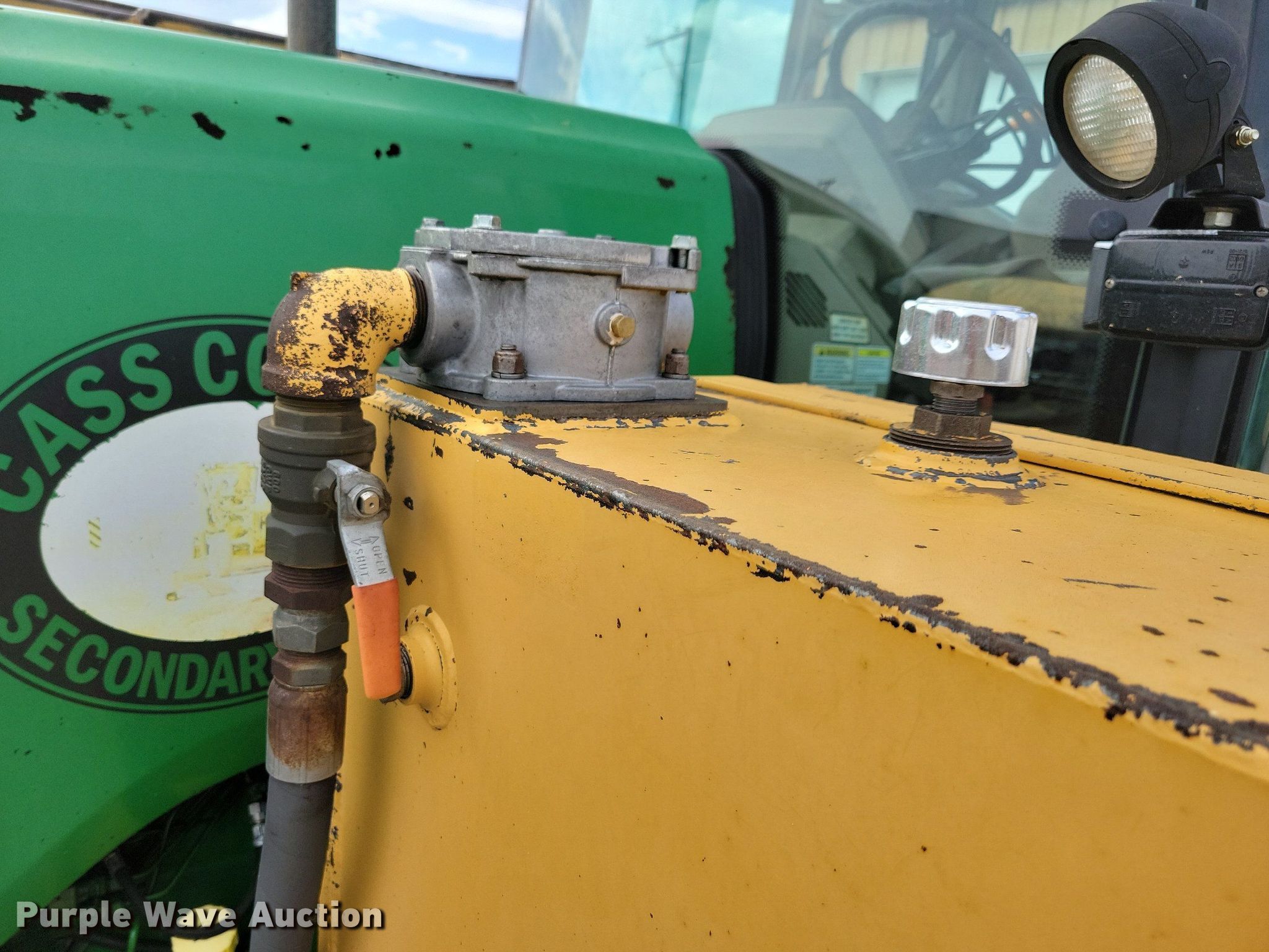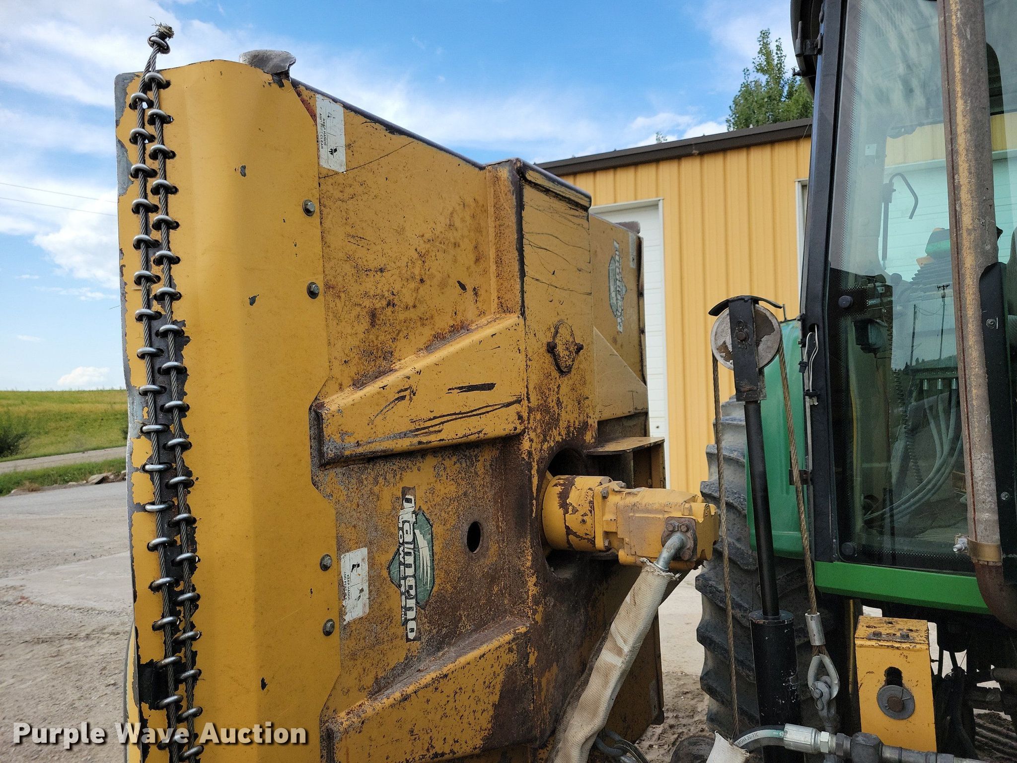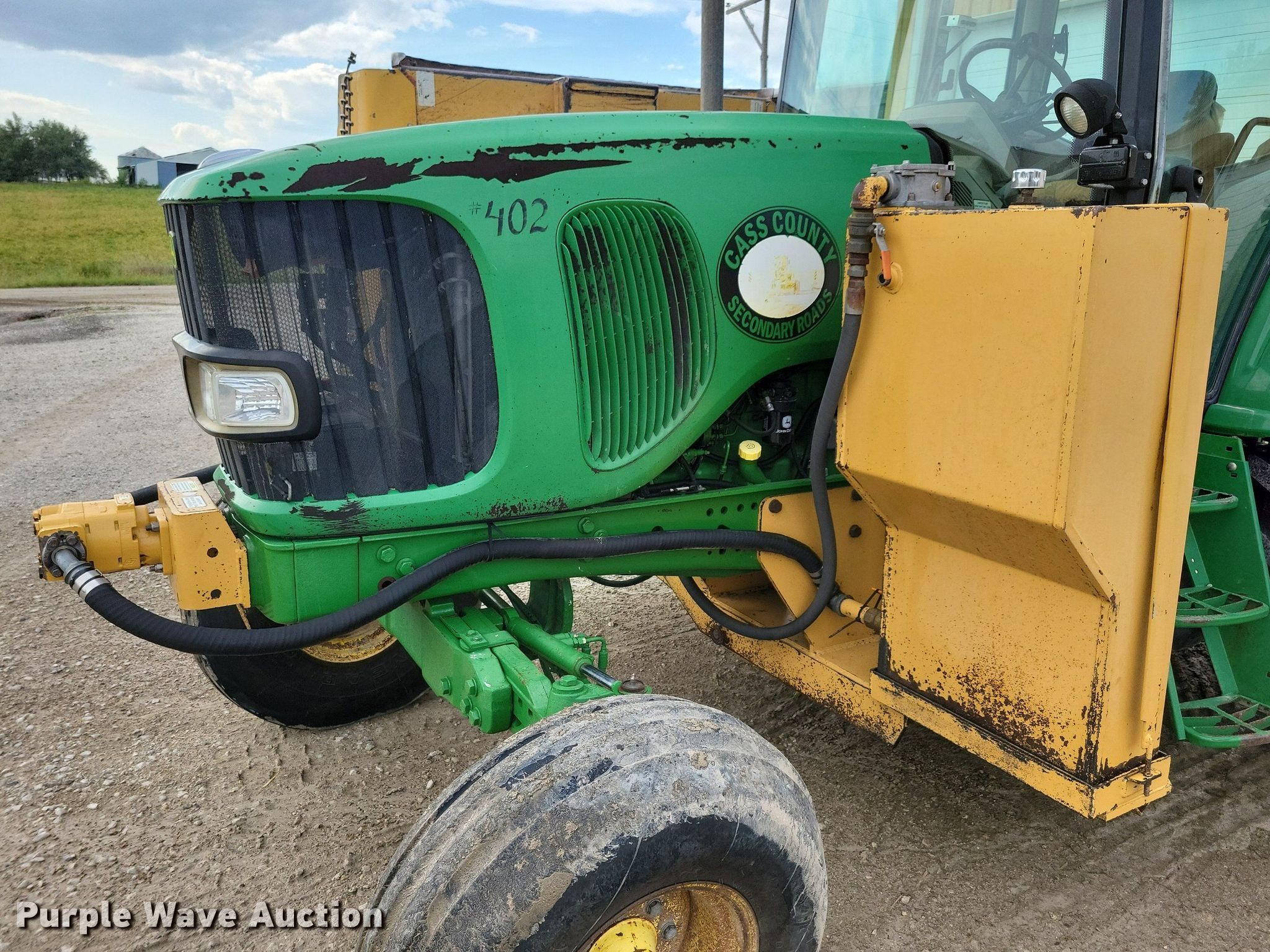 2003 John Deere 7220 tractor. Hours: 6,341 on meter, Serial: RW7220R003146, Unit #: 402. Engine John Deere, Serial: PE6068T270668, Cylinders: 6, Fuel type: Diesel. Transmission Powershift, 16F - 16R, Differential lock. Operators station AC, Heat. Features PTO: 540, Three point, Seven pin outlet, Hydraulic remote sets Rear: 3, Side rotary mower Diamond, Width: 60". Tires Front: 11-16, Rear: 480/85R34, Wheel weights: 1. Notes Front mount PTO, Unknown operating condition of three point. Cass County Iowa. 68968 600th Street. Griswold, IA 51535