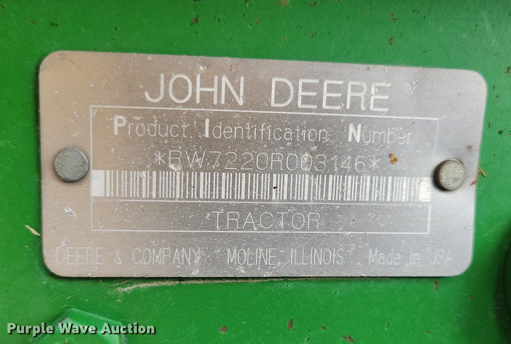 Purple Wave is selling a used Tractor in Iowa. This item is a 2003 John Deere 7220 tractor with the following: Hours: 6,341 on meter, Serial: RW7220R003146, Unit #: 402
