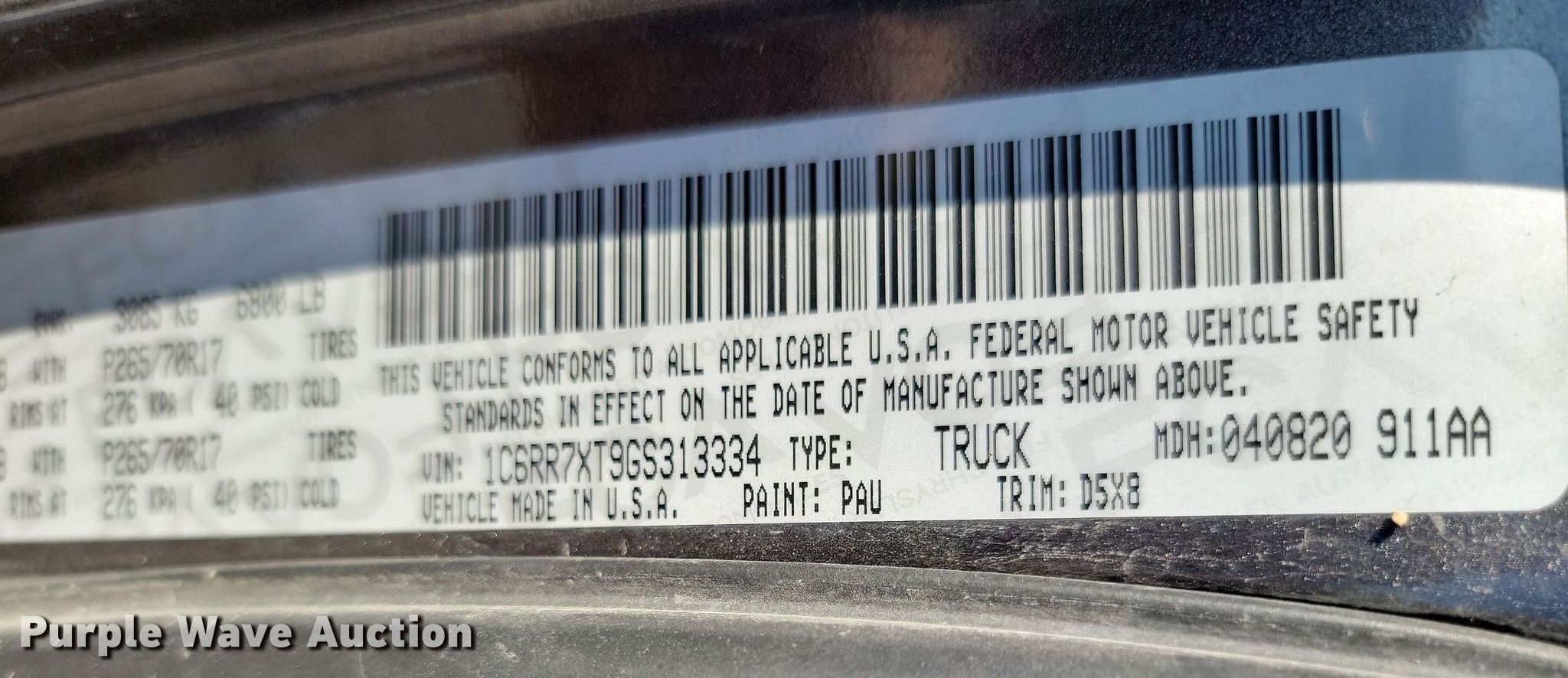 - VIN: 1C6RR7XT9GS313334