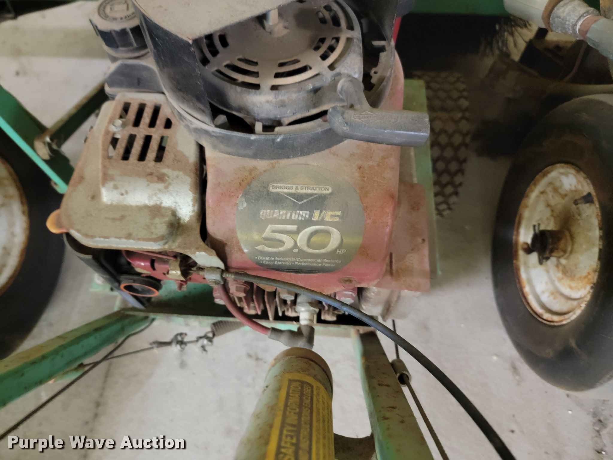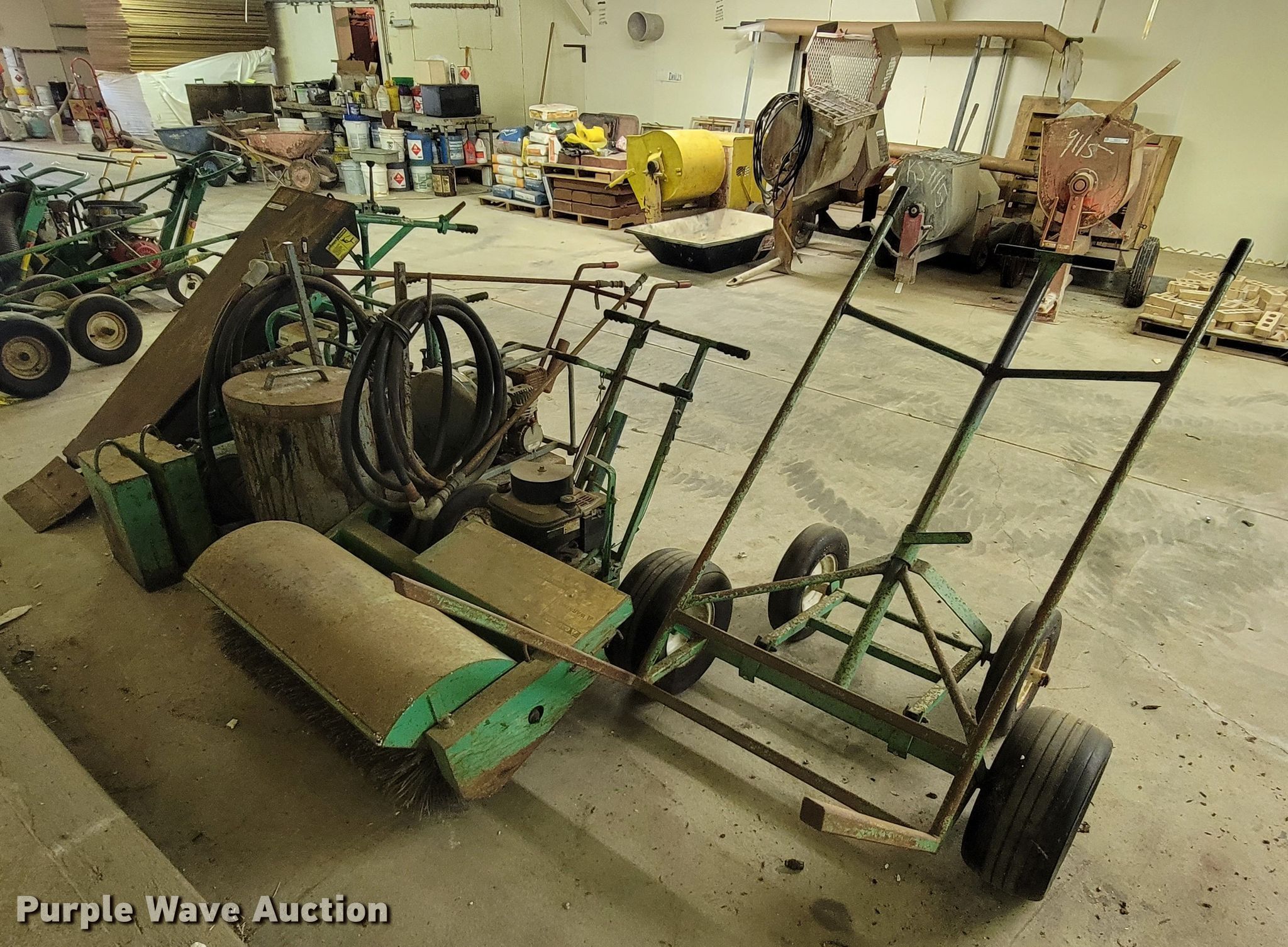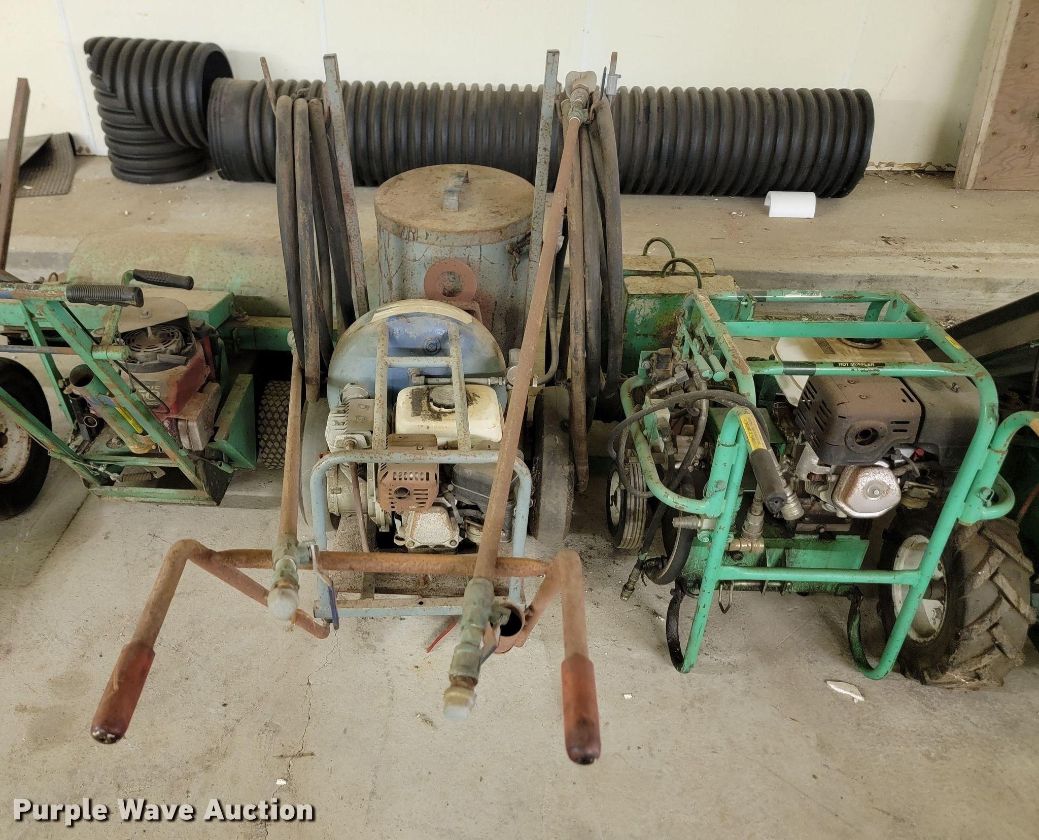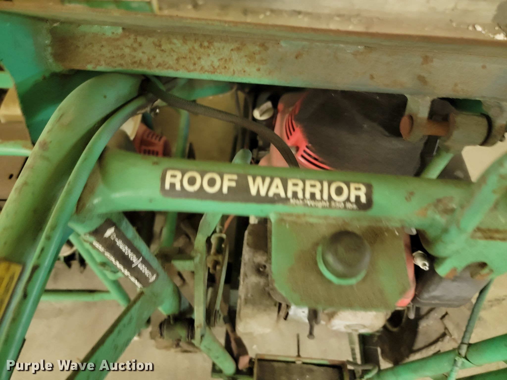 Purple Wave is selling a used Tools in South Dakota. This item is a Tools with the following: Garlock Roof Warrior tear-off machine, Engine, Cylinders: 1, HP: 11, Fuel type: Gas,, Hydraulic pump, Engine, Honda GX270, Cylinders: 1, HP: 9, Fuel type: Gas,, Winch, (2) weights, Tar pot, Engine, Cylinders: 1, Fuel type: Gas,, Power broom, Width: 36", Engine, Briggs & Stratton, Cylinders: 1, HP: 5, Fuel type: Gas,, Cart