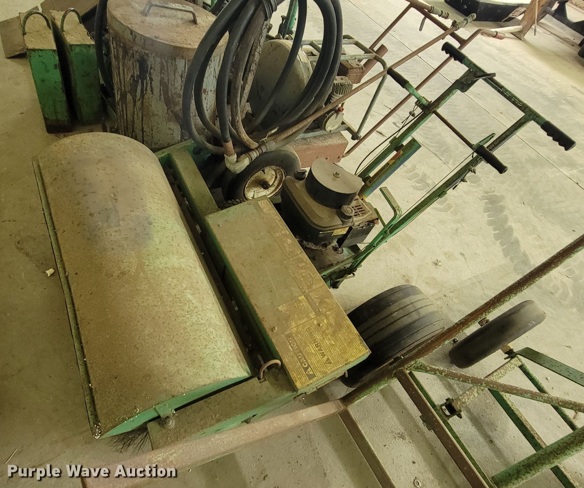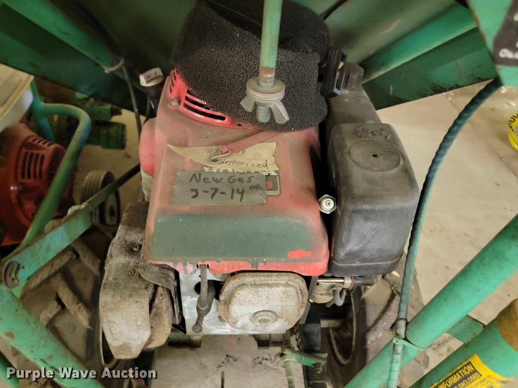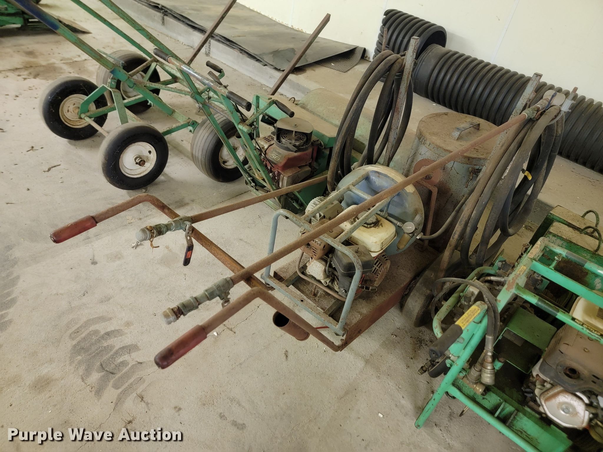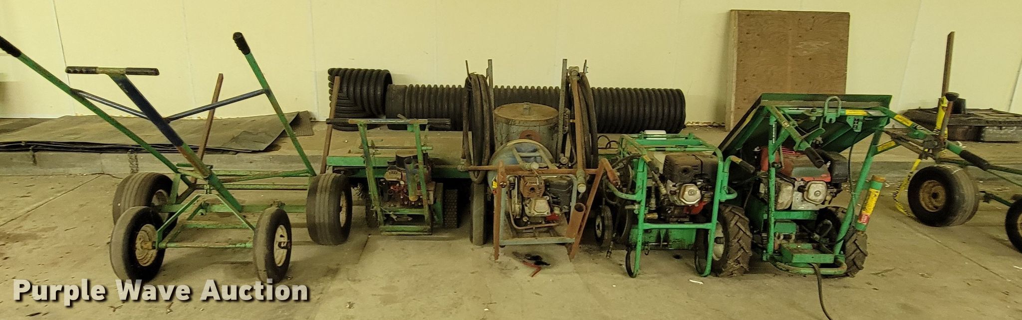 Purple Wave is selling a used Tools in South Dakota. This item is a Tools with the following: Garlock Roof Warrior tear-off machine, Engine, Cylinders: 1, HP: 11, Fuel type: Gas,, Hydraulic pump, Engine, Honda GX270, Cylinders: 1, HP: 9, Fuel type: Gas,, Winch, (2) weights, Tar pot, Engine, Cylinders: 1, Fuel type: Gas,, Power broom, Width: 36", Engine, Briggs & Stratton, Cylinders: 1, HP: 5, Fuel type: Gas,, Cart