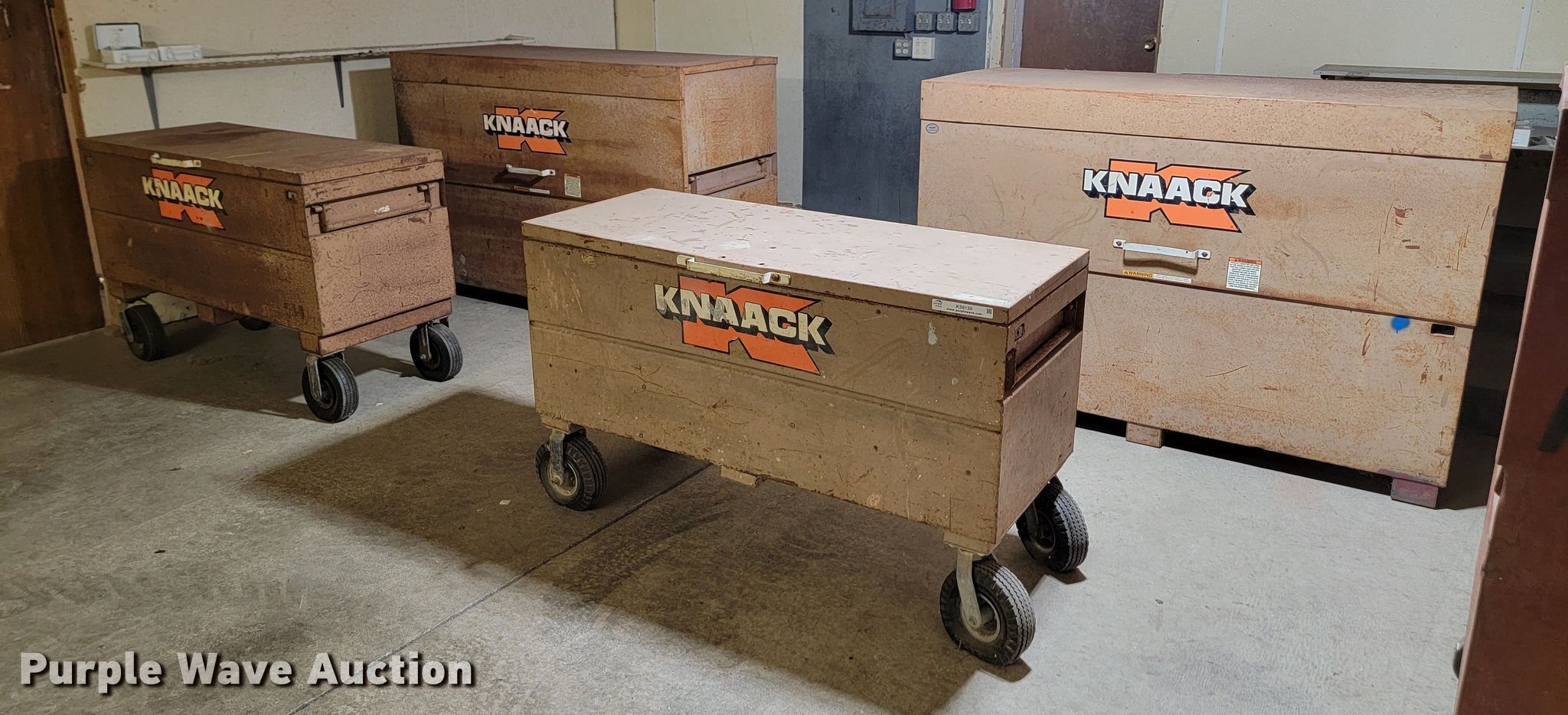 Purple Wave is selling a used Tools in South Dakota. This item is a (4) Knaack toolboxes with the following: 60" L x 24" W x 37" H, 6' L x 30" W x 50" H