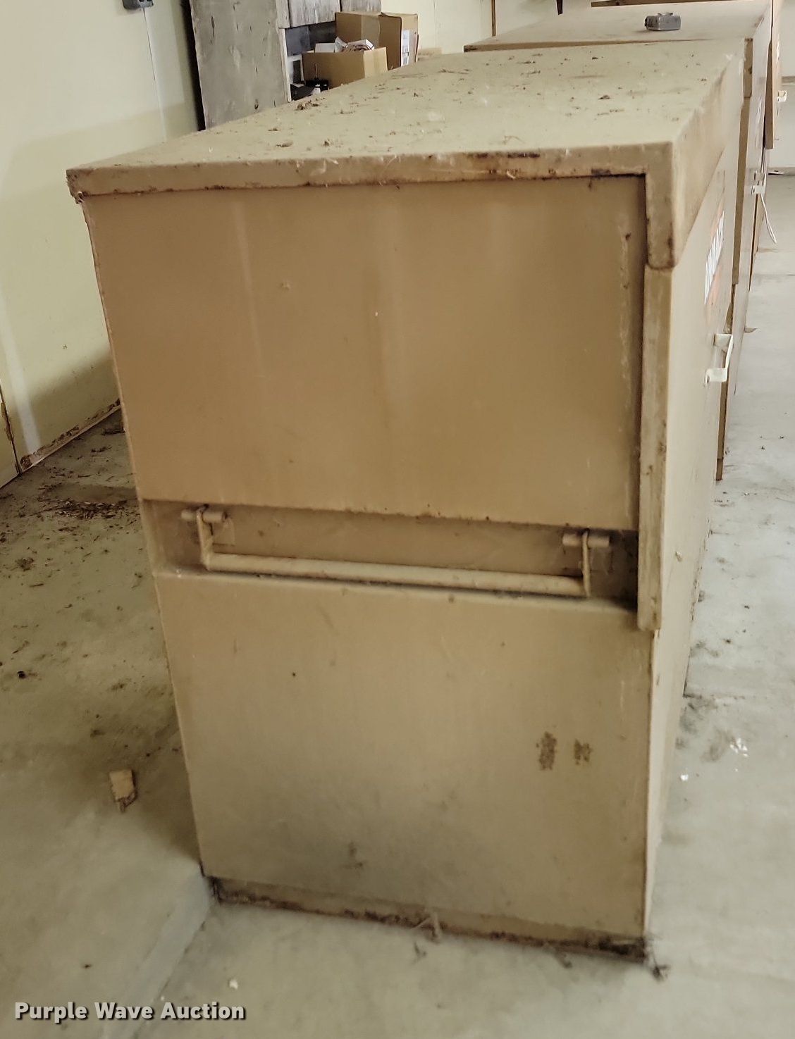 Purple Wave is selling a used Tools in South Dakota. This item is a Knaack toolbox with the following: 6' L x 31" W