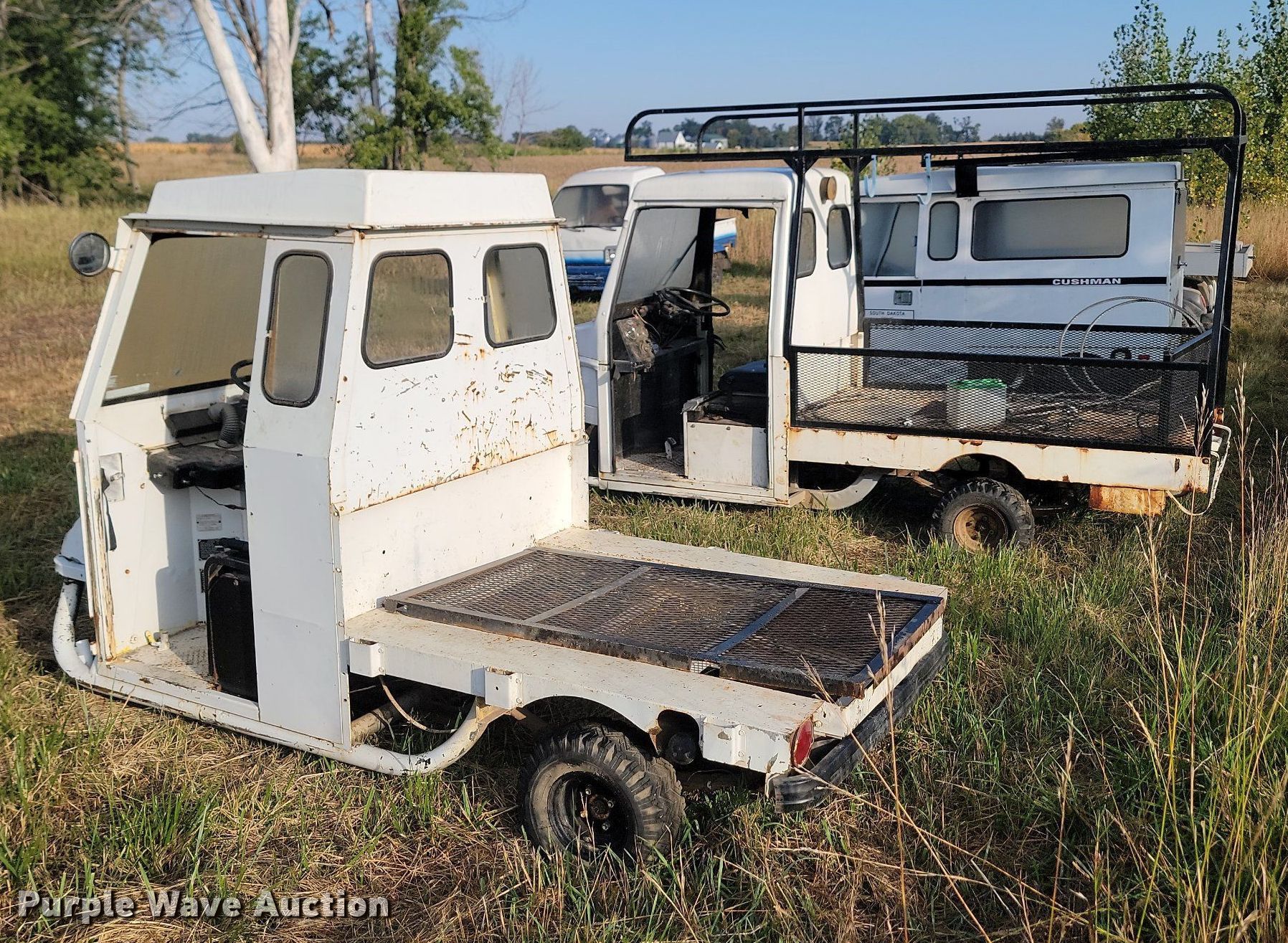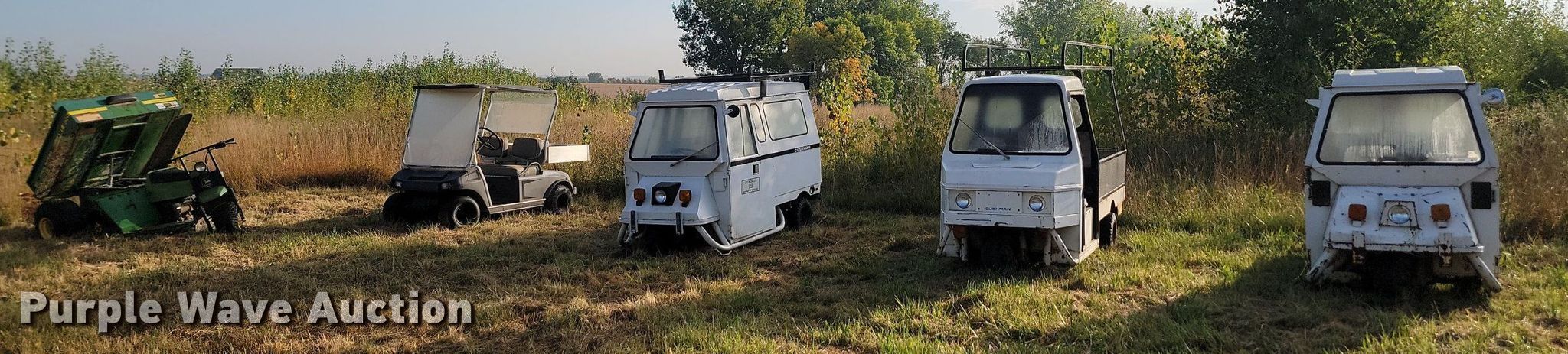 Purple Wave is selling a used Utility Vehicle in South Dakota. This item is a (4) utility vehicles with the following: (3) Cushman utility cart, Two cylinder gas engine, Club Car golf cart, Charger, John Deere AMT 600 utility cart, Single cylinder gas engine
