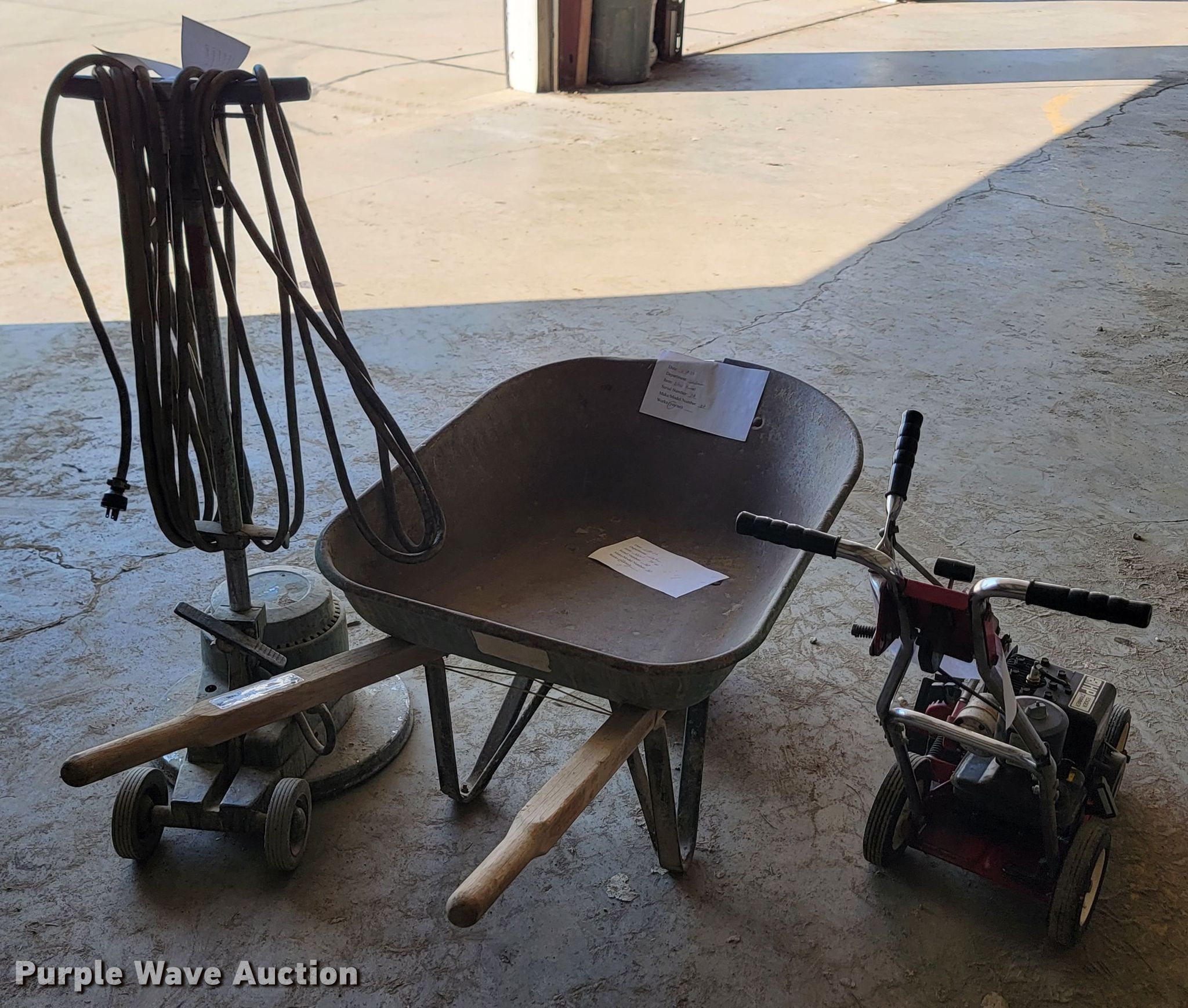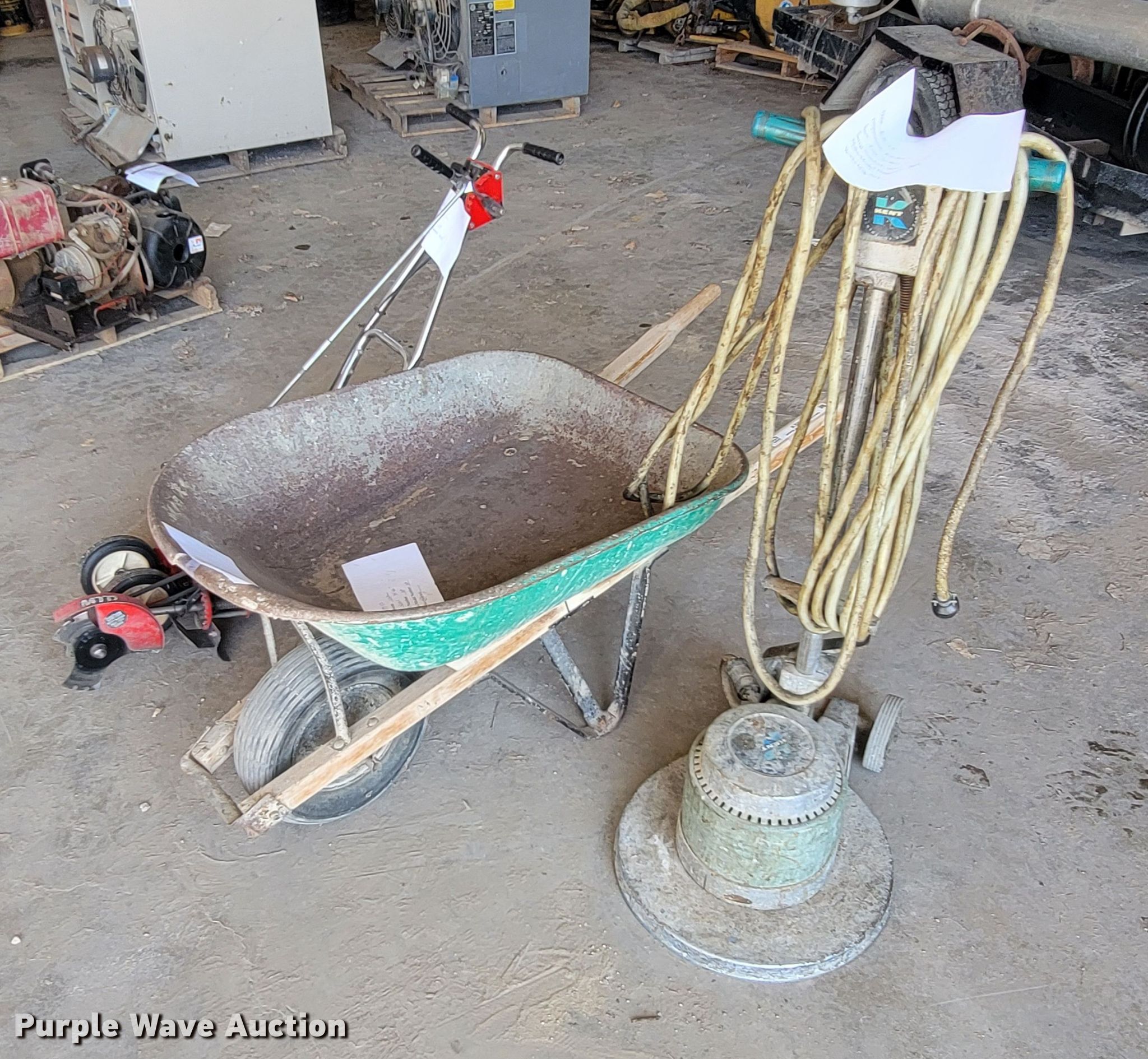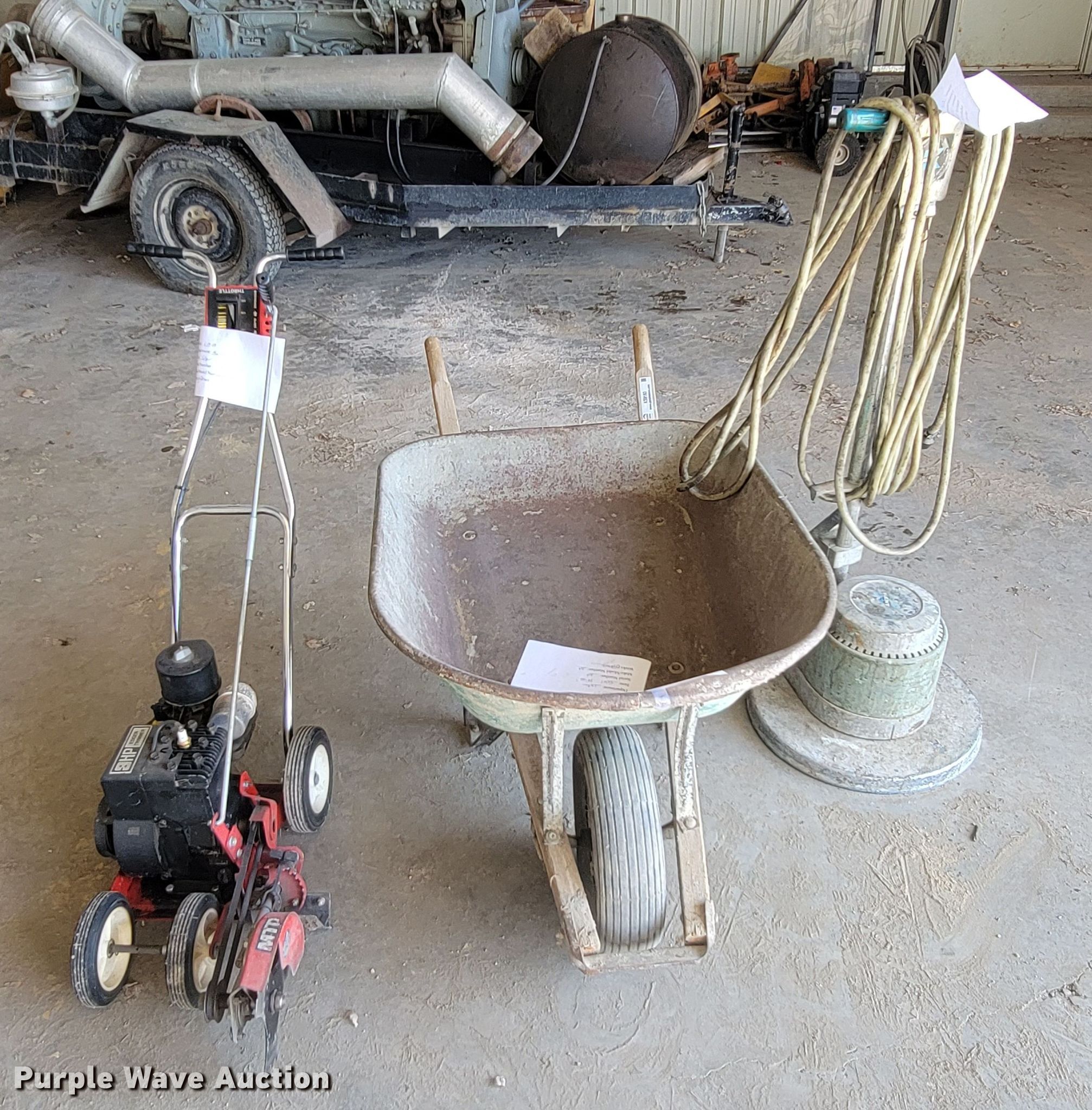 Purple Wave is selling a used Tools in South Dakota. This item is a Tools with the following: MTD edger, 8 HP single cylinder gas engine, Wheelbarrows, Floor buffer