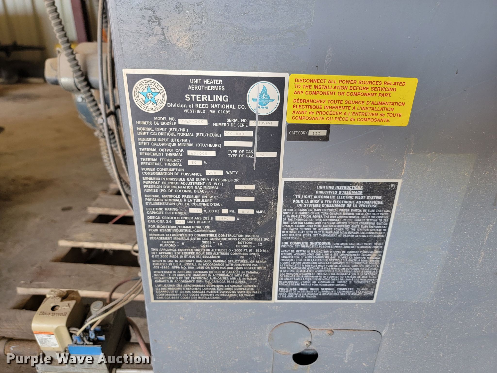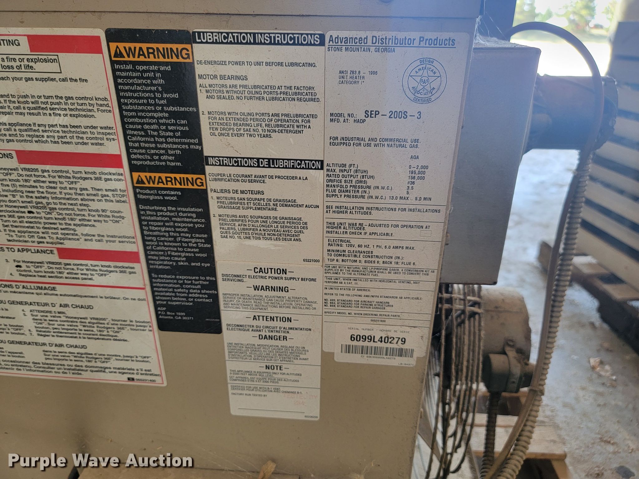 Purple Wave is selling a used Appliances in South Dakota. This item is a (4) furnaces with the following: Natural gas, 195,000 to 200,000 BTU