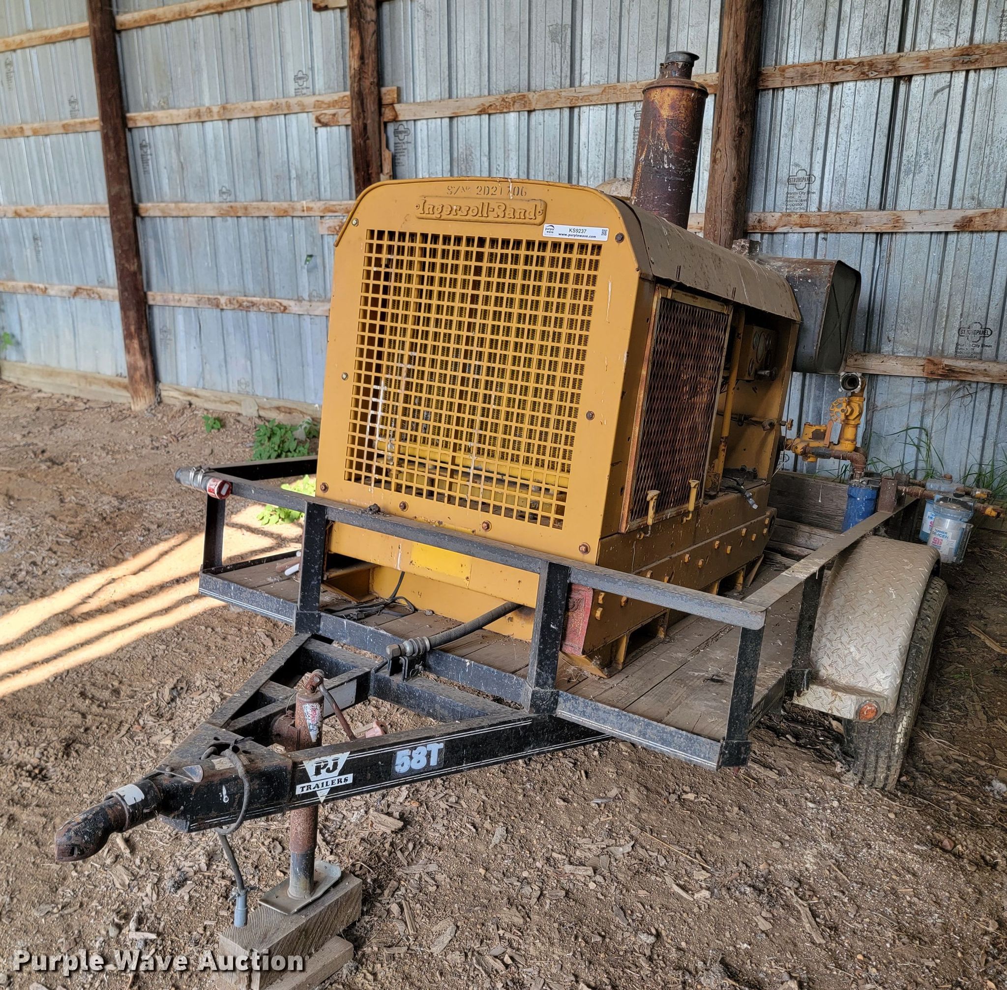 Ingersoll Rand air compressor. Hours: 2,350 on meter. Engine Cylinders: 2, Fuel type: Diesel. Trailer 11.5' L x 64" W, Ball hitch size: 2", Suspension: Spring, Axles: Single, Tire size: ST205/75R15. Notes Dead battery, Tires flat, Non-operational unit. Transfer of ownership documentation will be a bill of sale. State of South Dakota Property Management. Sioux Falls, SD 57107