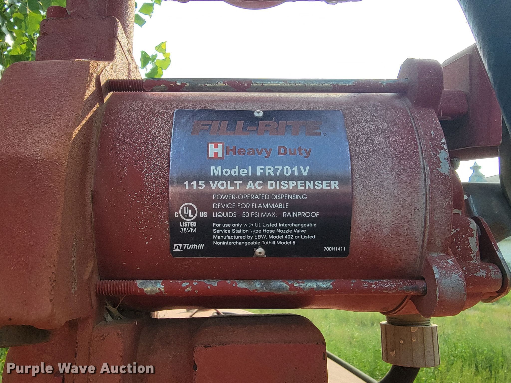 Purple Wave is selling a used Fuel and Lube in South Dakota. This item is a Fuel tank with the following: 6' L x 64" W, Capacity: Approx. 1,000 gallons, Fill-Rite pump, Volts: 115, Unknown operating condition
