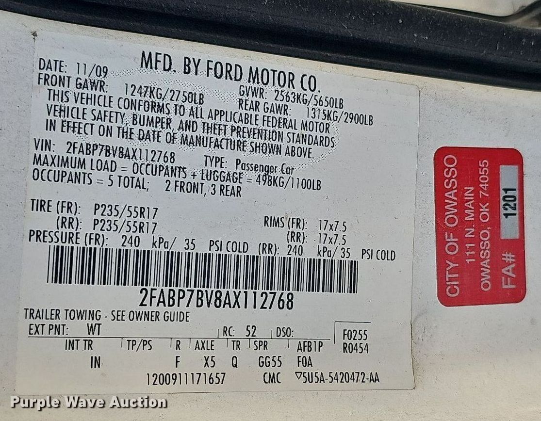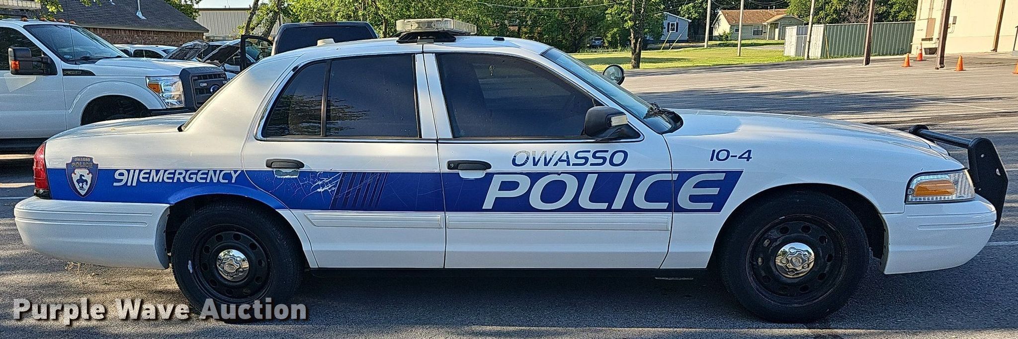 2010 Ford Crown Victoria Police Interceptor. Miles: 98,842 on odometer, VIN: 2FABP7BV8AX112768, Unit #: 13. Engine Displacement: 4.6L V8 SOHC, Cylinders: 8, Fuel type: Gas. Transmission Automatic. Interior AC, Heat, Power windows, Power locks, Cruise control. Tires Size: P235/55R17. Notes Dash warning indicator: TPMS. Law enforcement and emergency equipment will be removed prior to auction. Includes but not limited to decals, police radio, spotlight, emergency lights and siren, firearm rack, and camera. Oklahoma title. Seller is a government entity who will be assigning and distributing the title. Please contact the seller for distribution questions. City of Owasso, OK. 200 South Main Street. Owasso, OK 74055